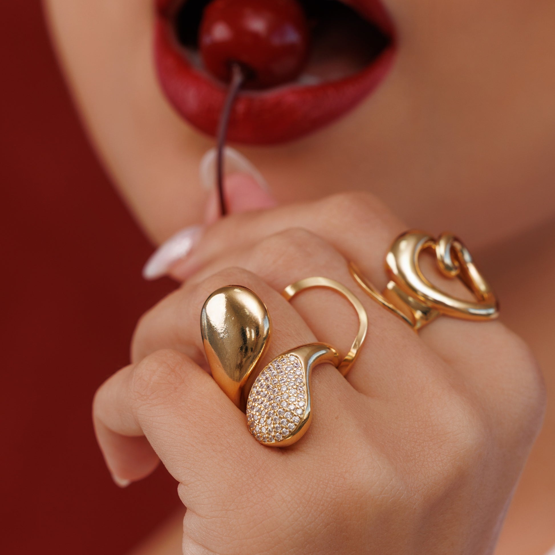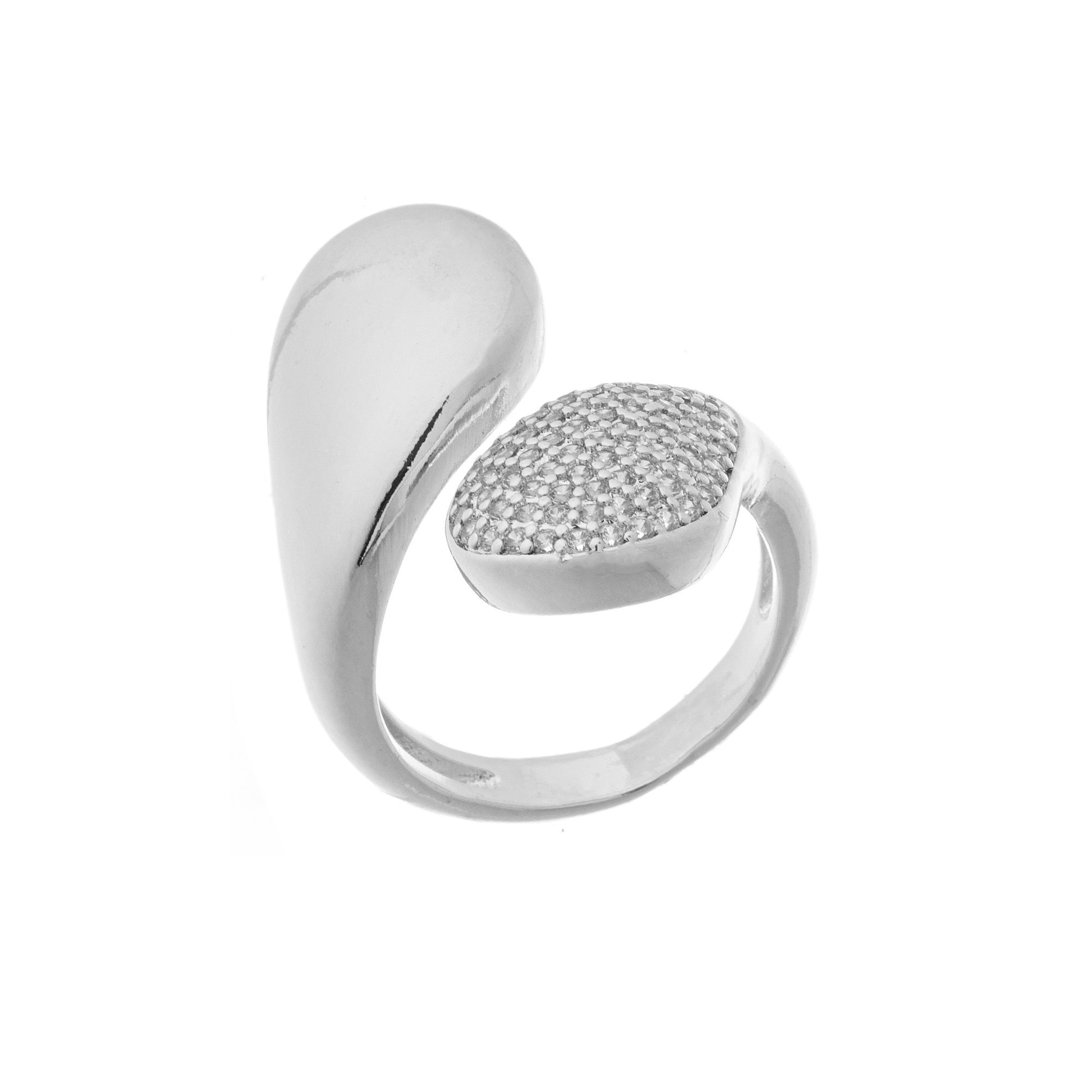Descrição: Anel regulável, com acabamento liso e cravejado em zircônia cristal