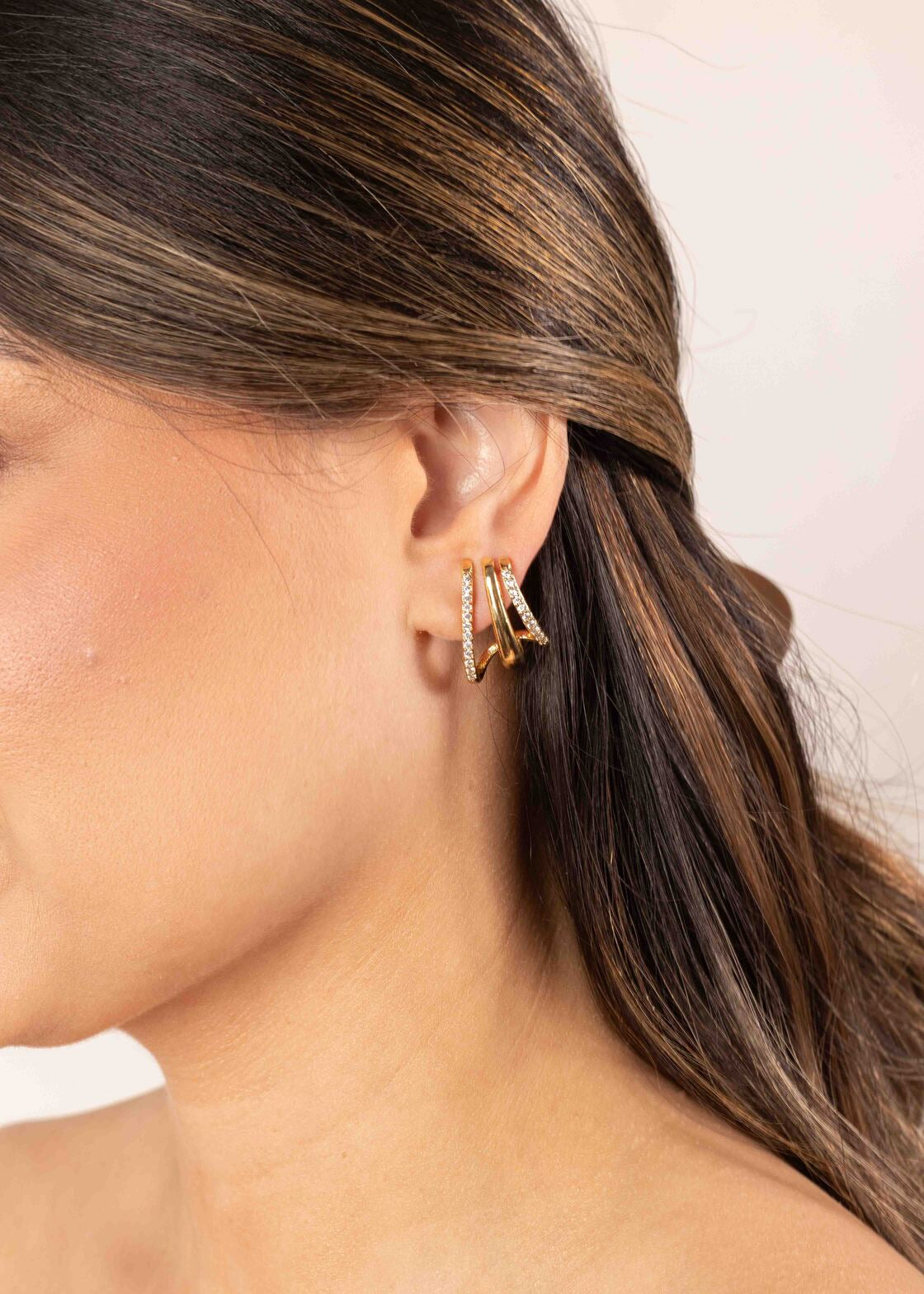 O Brinco Argola Dupla Dourada com Zircônias é a combinação ideal entre sofisticação e modernidade.