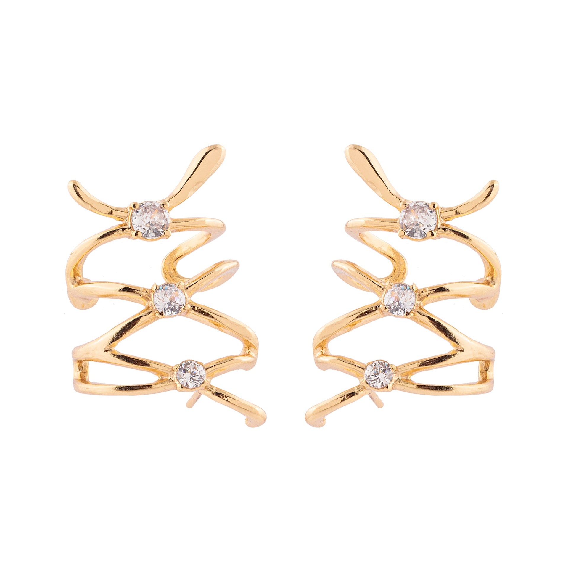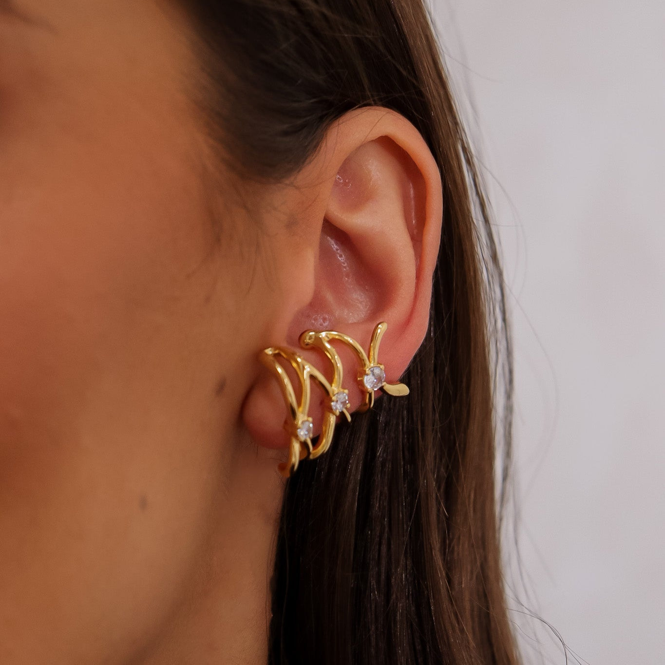 Brinco Ear cuff Design Orgânico com Zircônia Dourado