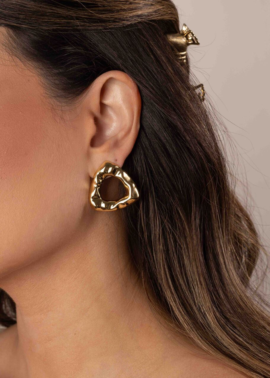 Brinco médio com design orgânico e acabamento polido em banho dourado.