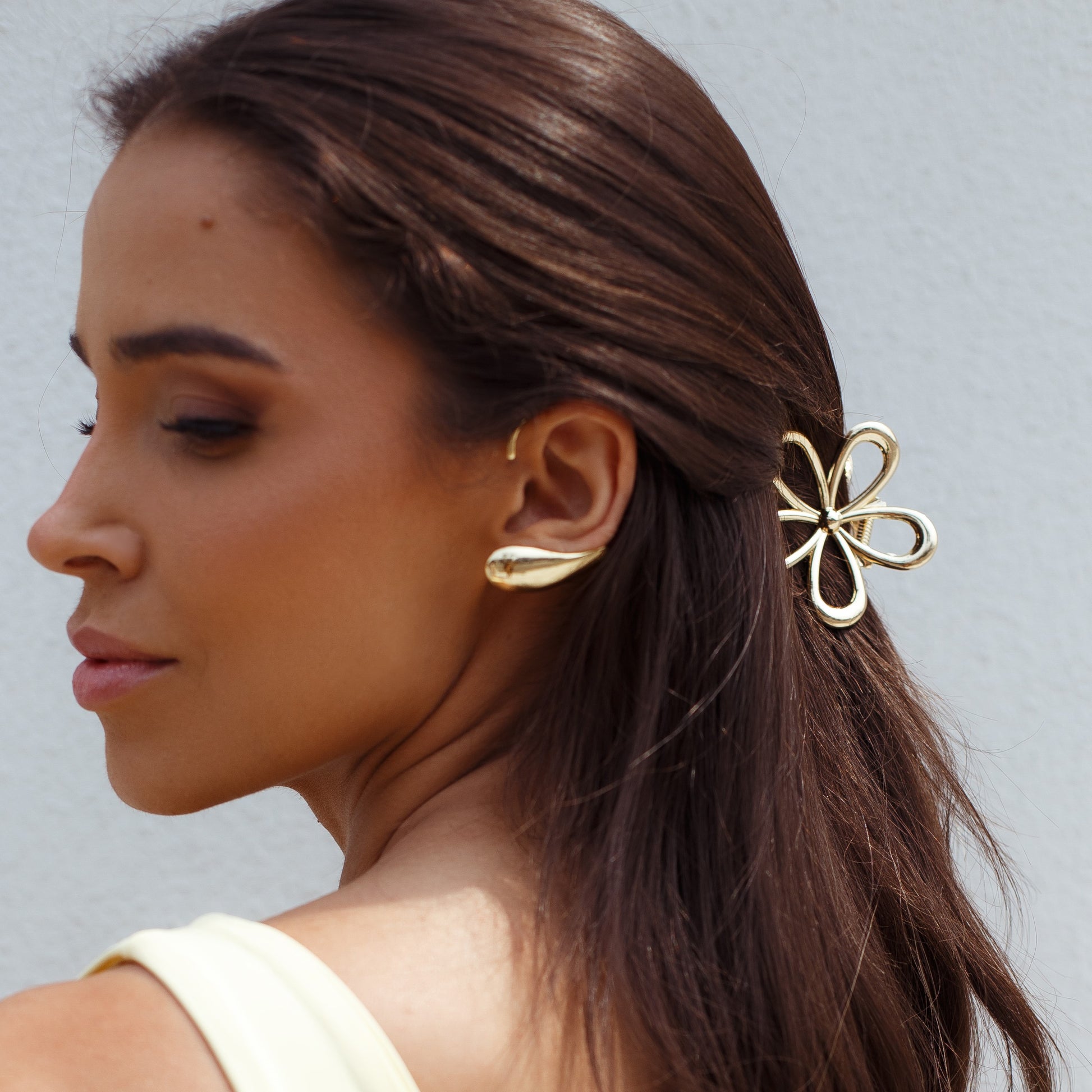 Descrição: piranha de cabelo, tamanho grande, formato de flor.