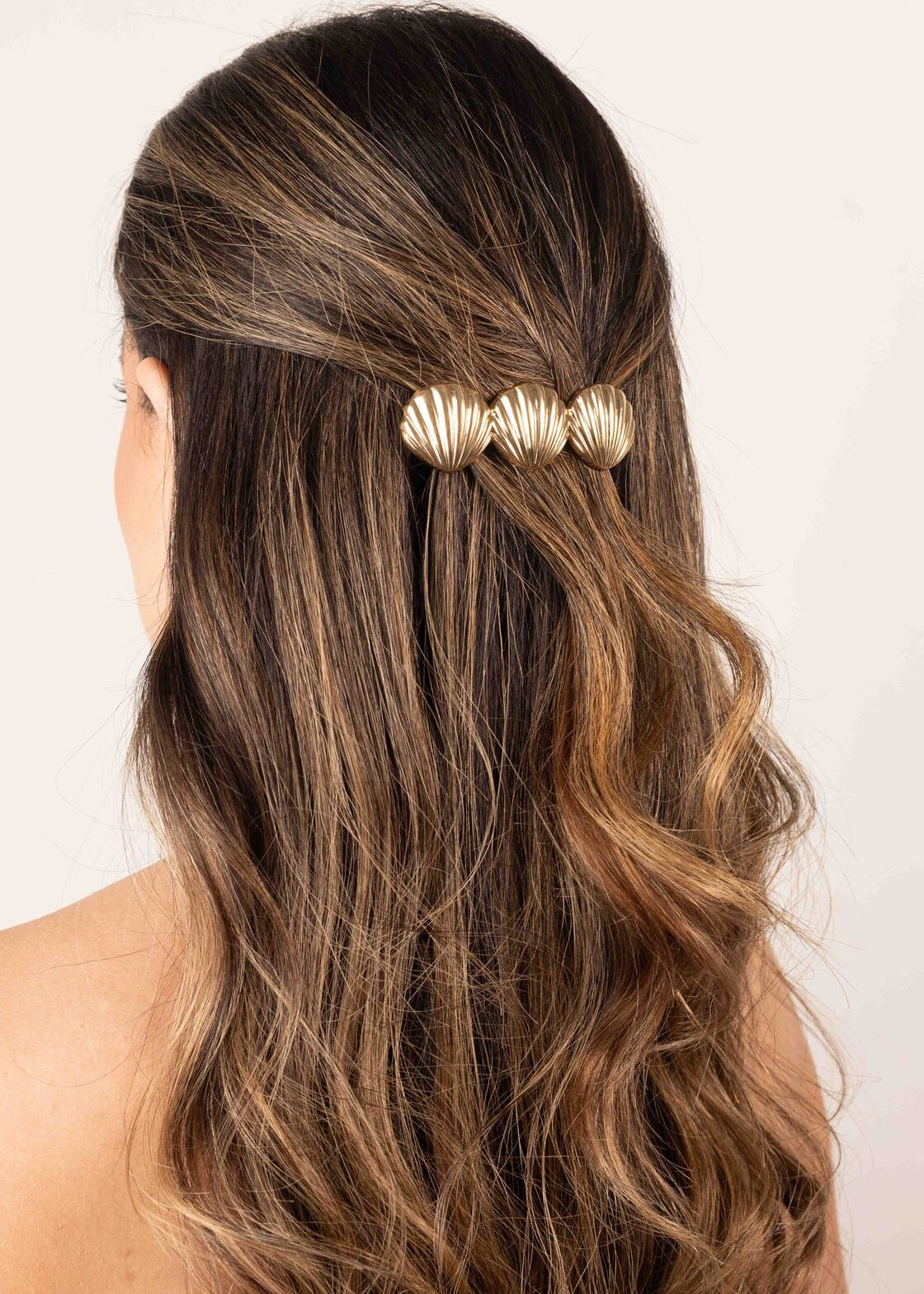Com três conchas em acabamento metalizado, o acessório é ideal para dar destaque aos penteados de forma delicada e moderna.