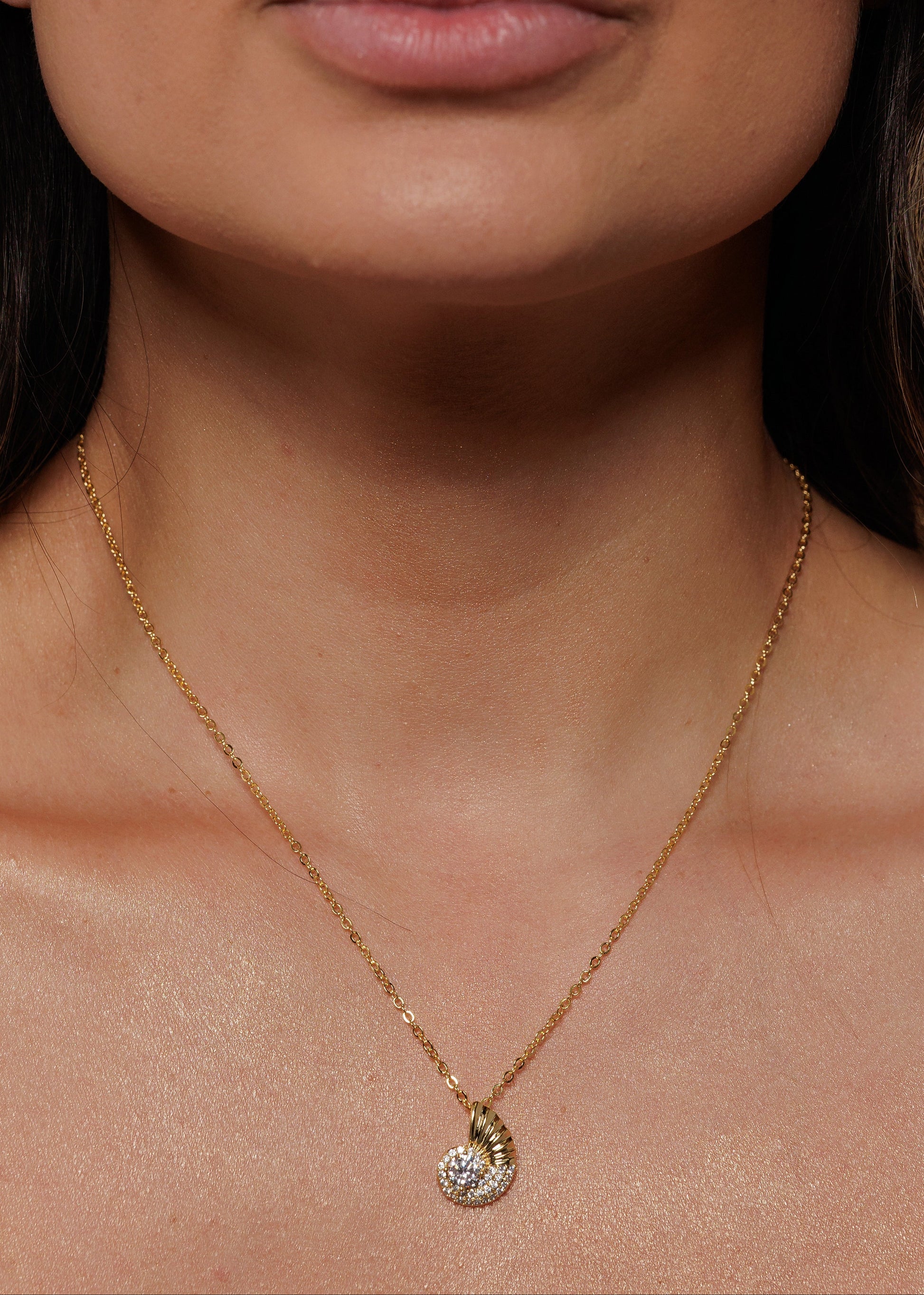 Inspirado nos tesouros do oceano, o Colar Dourado Concha Cravejada traduz delicadeza e sofisticação em uma peça atemporal. O pingente em formato de concha, com detalhe cravejado em brilho sutil, cria um ponto de luz elegante que valoriza o colo com leveza e feminilidade.