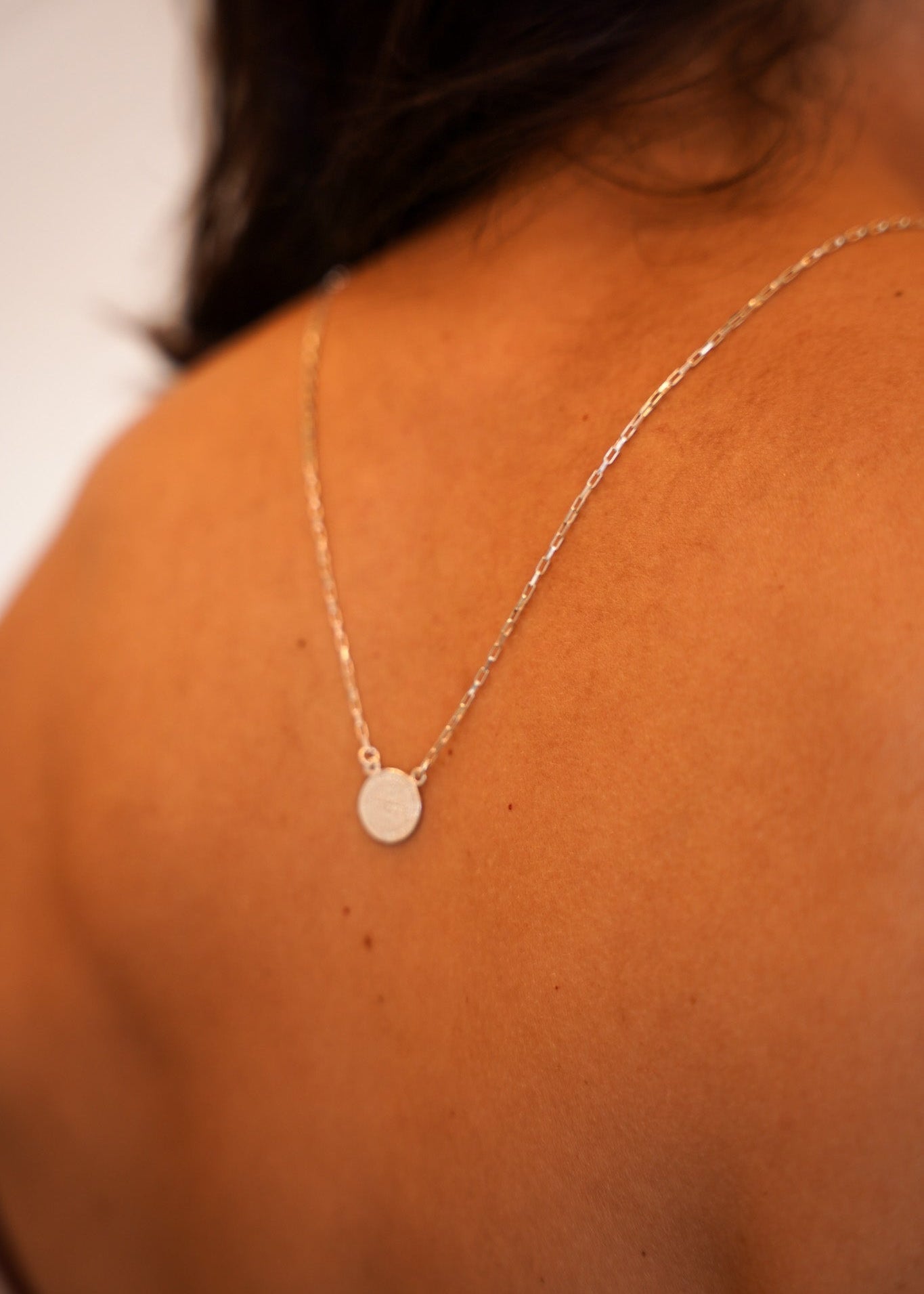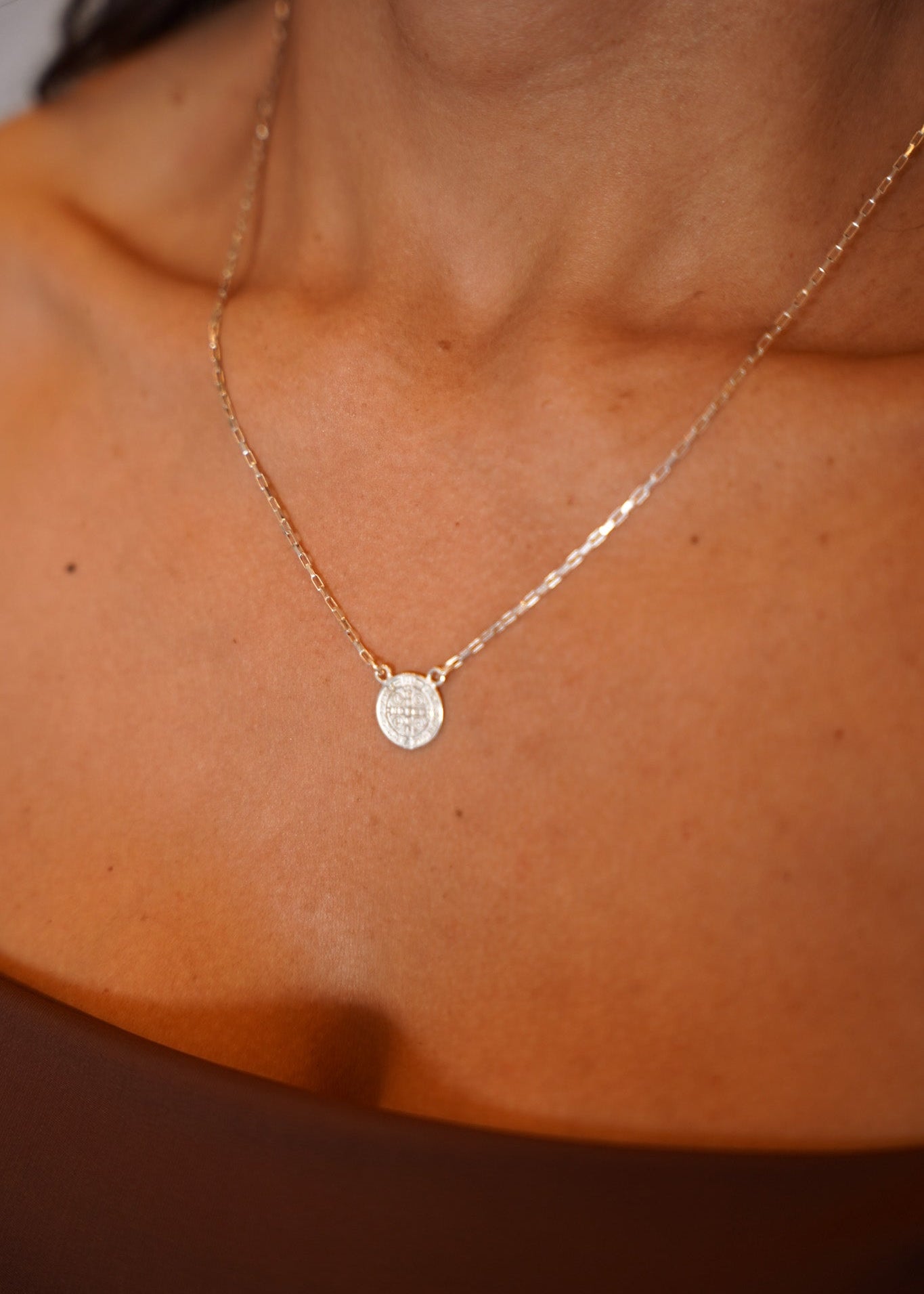 Escapulário minimalista e atemporal, produzido em Prata 925 legítima, garantindo brilho duradouro, resistência e alta qualidade para uso diário.