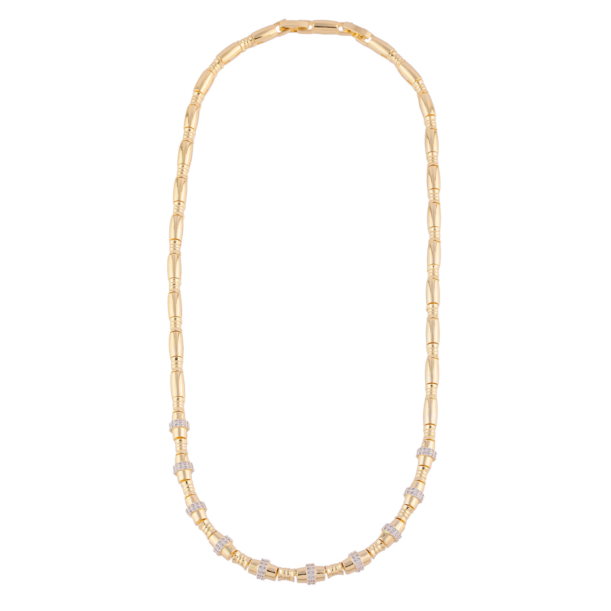 Descrição: Colar articulado com fecho click e detalhes cravejados em zircônia cristal
