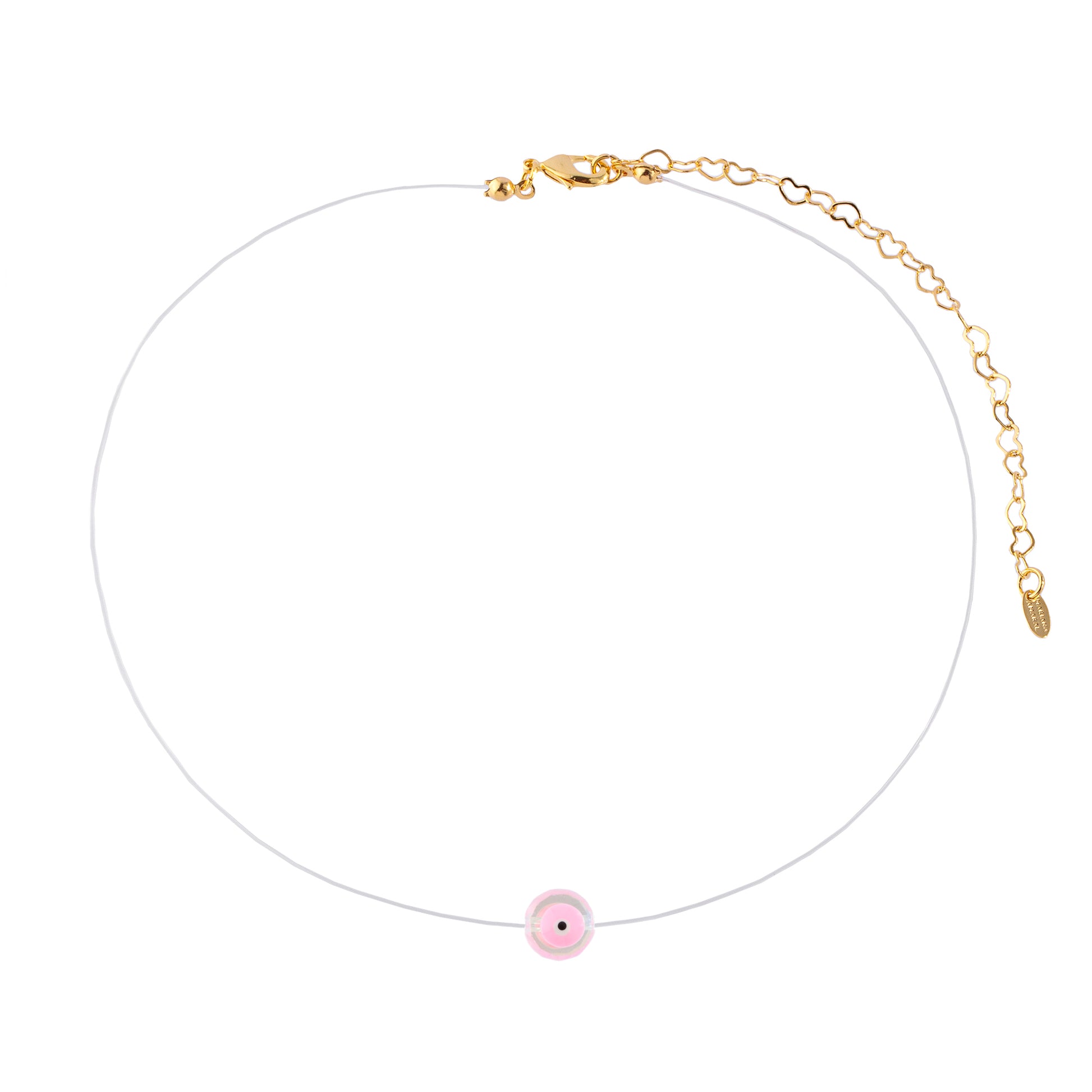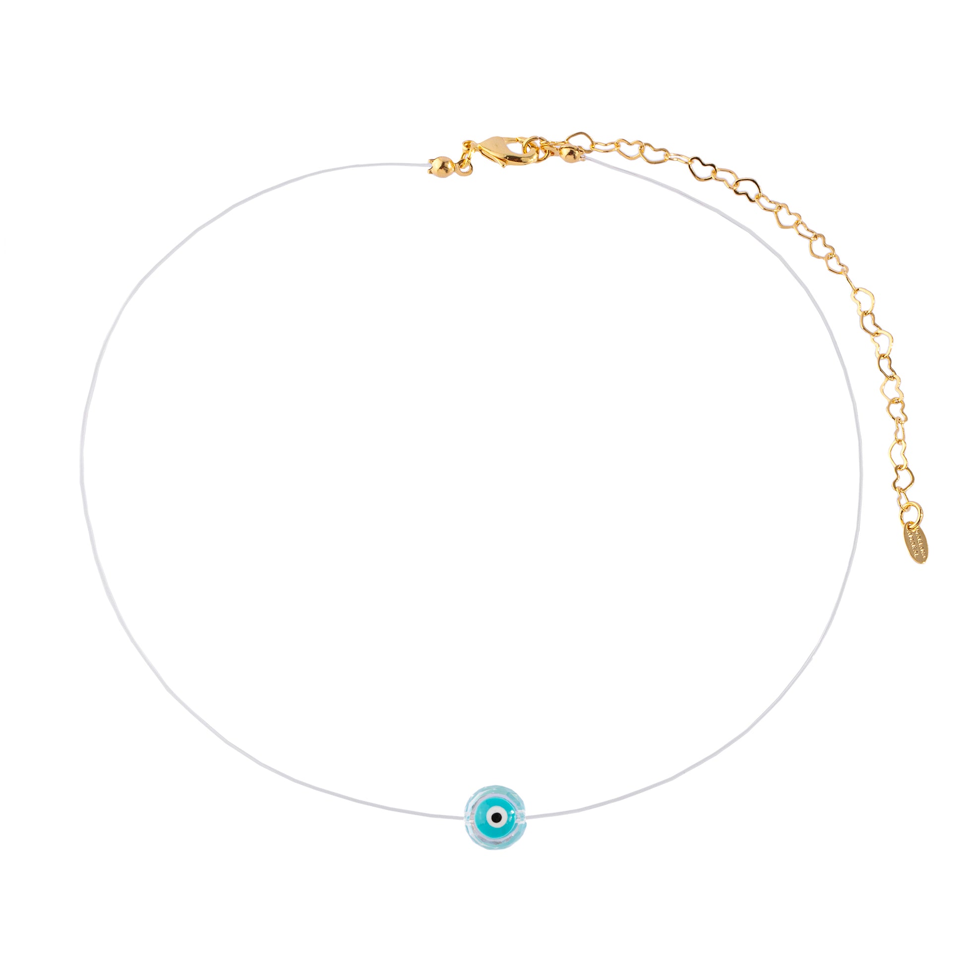 Descrição: Colar confeccionado em fio transparente com pingente de olho grego