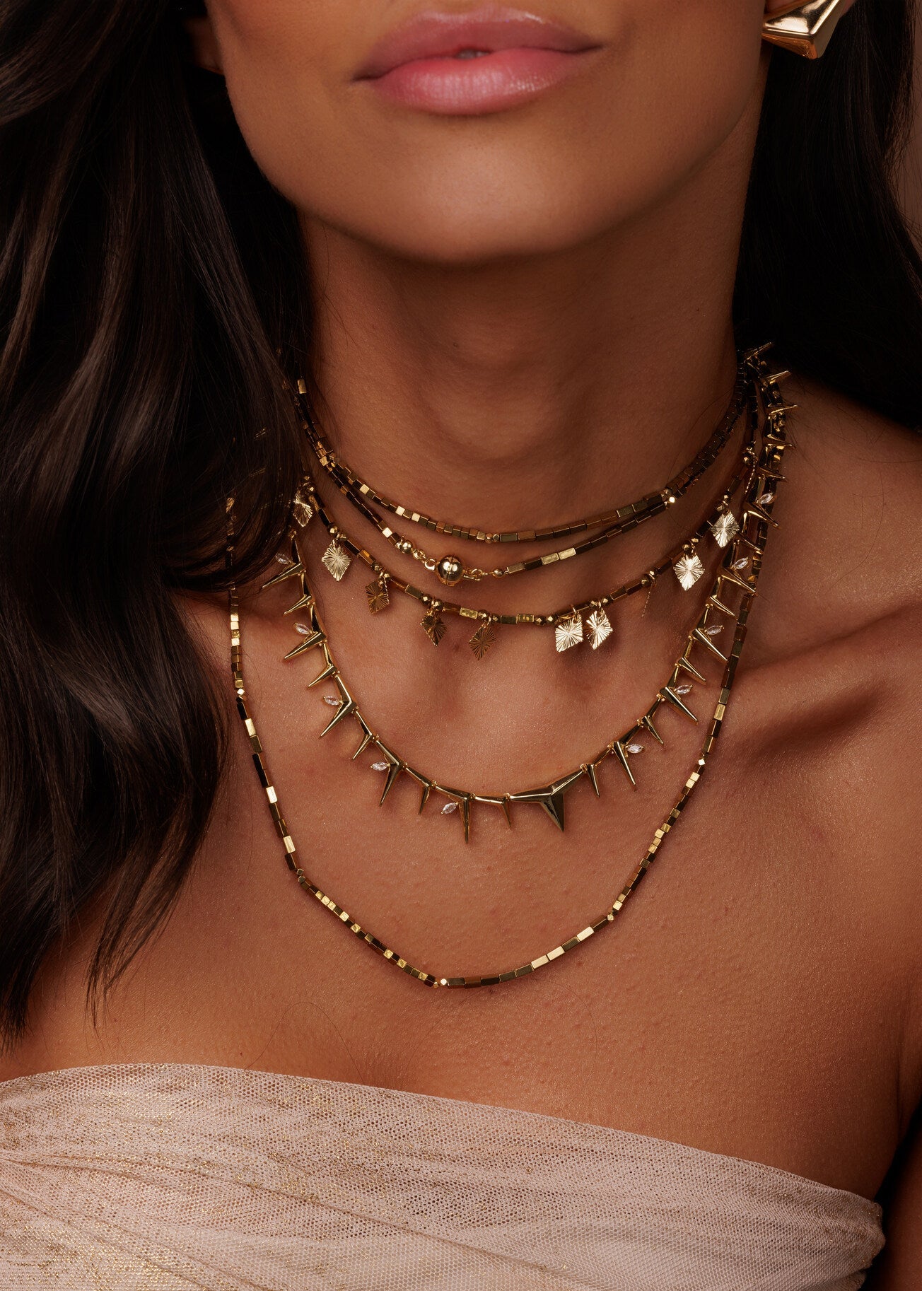 Colar Spikes Com Detalhes Cravejados Dourado/Prateado