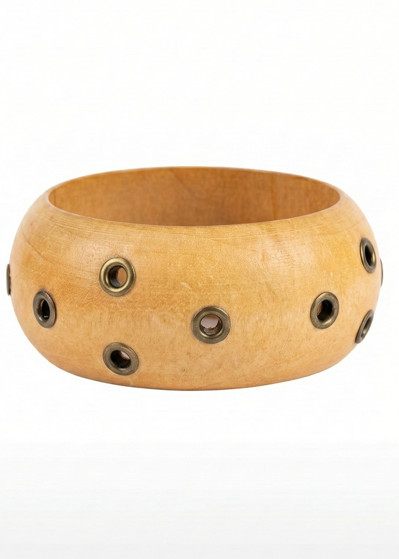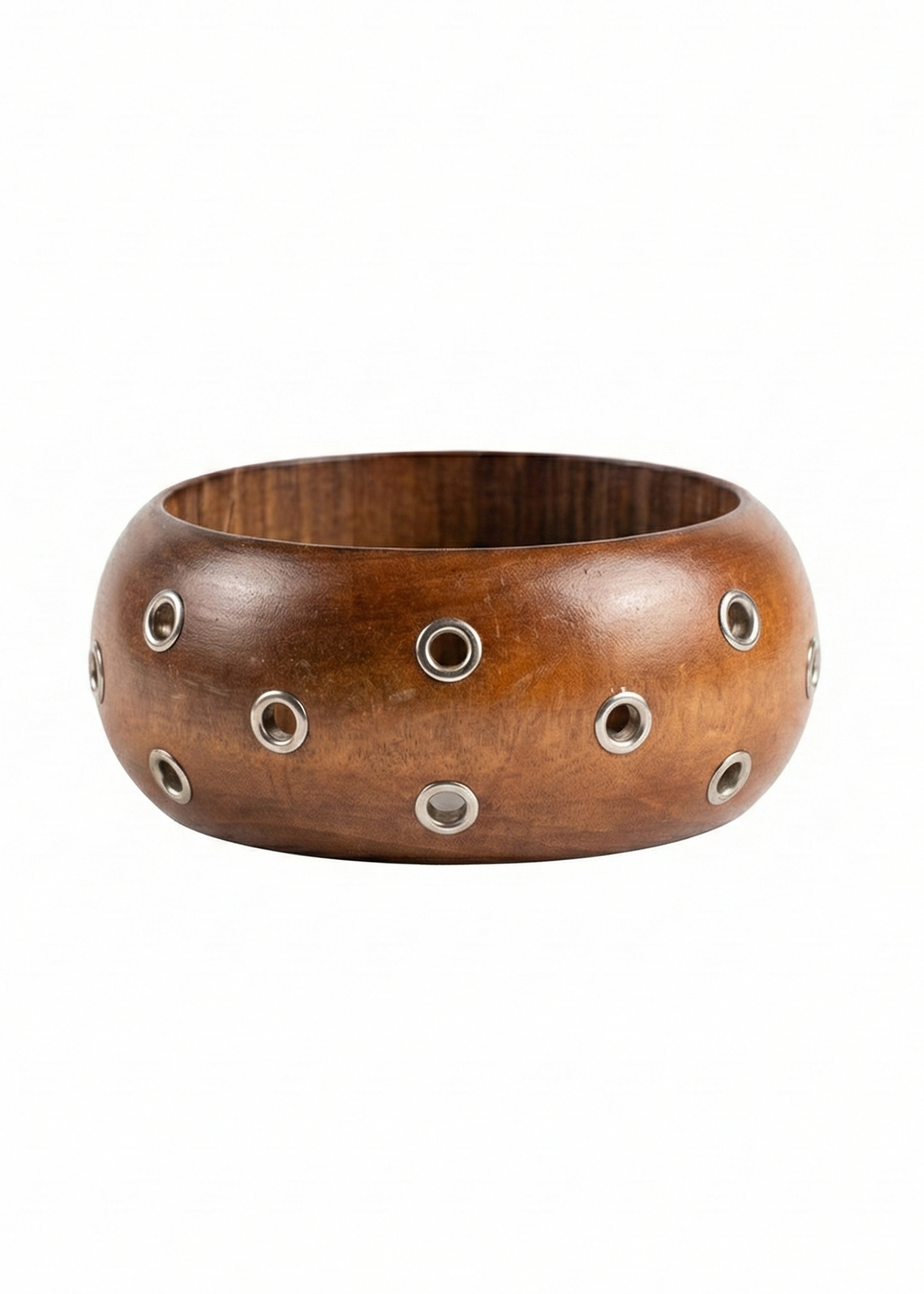 O Bracelete Madeira com Apliques Metálicos é aquele acessório statement que une o artesanal ao moderno. A madeira natural traz leveza e textura, enquanto os apliques metálicos criam um visual fashion, cool e cheio de personalidade. Perfeito para elevar looks minimalistas ou complementar composições mais ousadas.