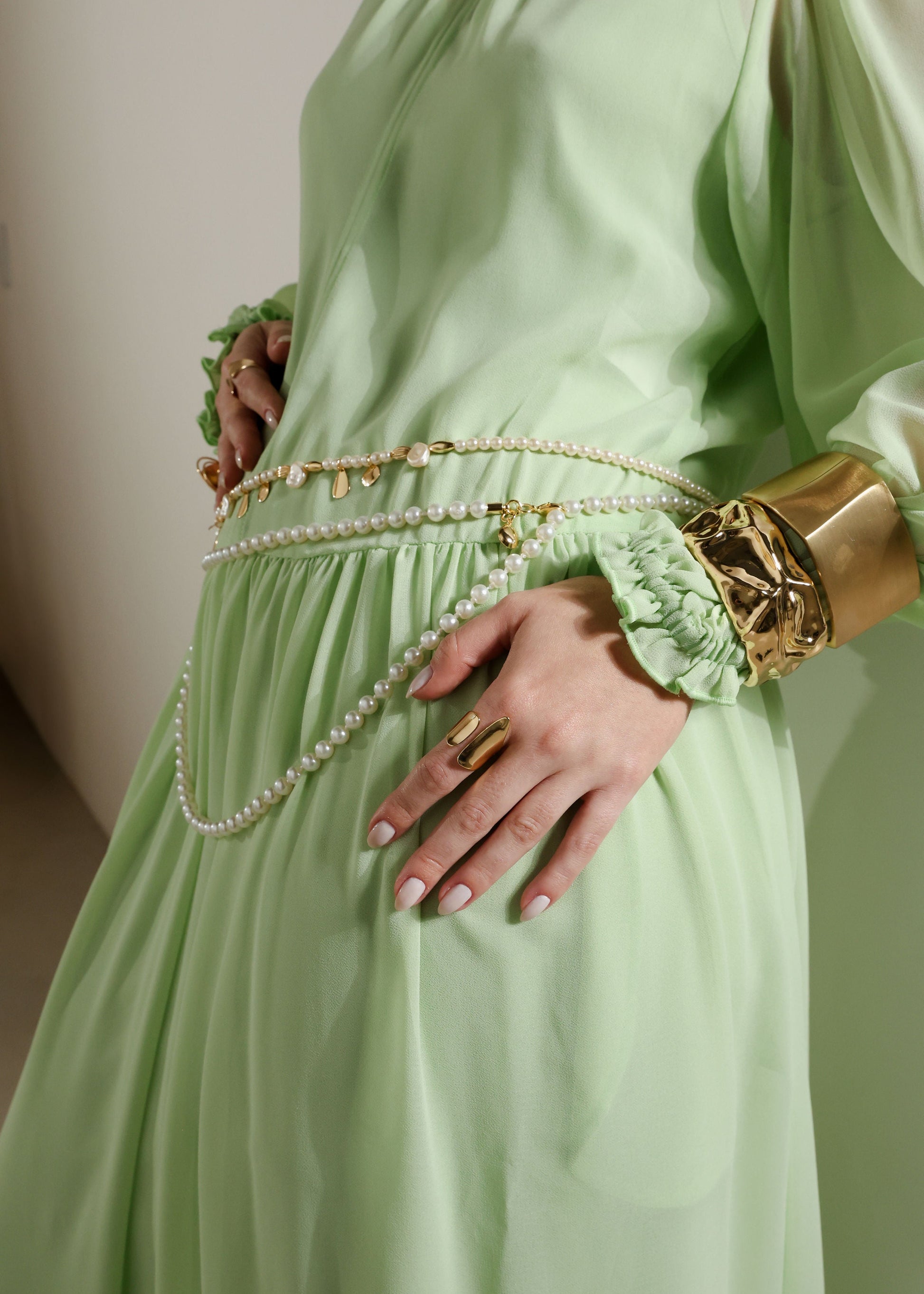 O Cinto de Pérolas Dourado é o acessório perfeito para transformar looks básicos em produções sofisticadas e cheias de estilo.