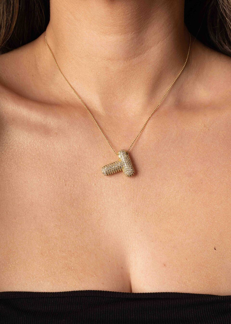 Descrição: Colar com corrente lisa e pingente de letra estilo bubble cravejado em zircônia.
