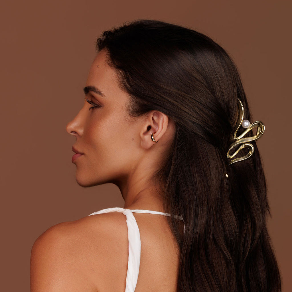 A Piranha de Cabelo Dourada com Pérola é um acessório elegante e marcante, perfeito para prender grandes mechas com estilo. Seu acabamento dourado combina sofisticação com praticidade, enquanto a pérola adiciona um toque delicado e moderno ao visual. Ideal para deixar o cabelo solto com charme ou criar penteados simples e elegantes no dia a dia.