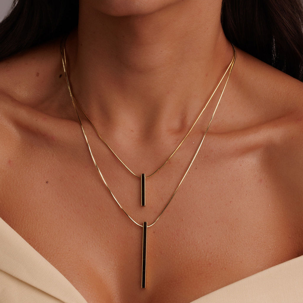 O Colar Longo Duplo Cano Retangular traz um design moderno e minimalista, perfeito para composições elegantes. Com corrente em malha diamantada, apresenta dois canos retangulares em tamanhos de 2,5 cm e 5 cm, criando um contraste delicado e sofisticado. As correntes de 40 cm e 60 cm oferecem camadas que valorizam o visual, tornando a peça versátil para diferentes estilos e ocasiões.