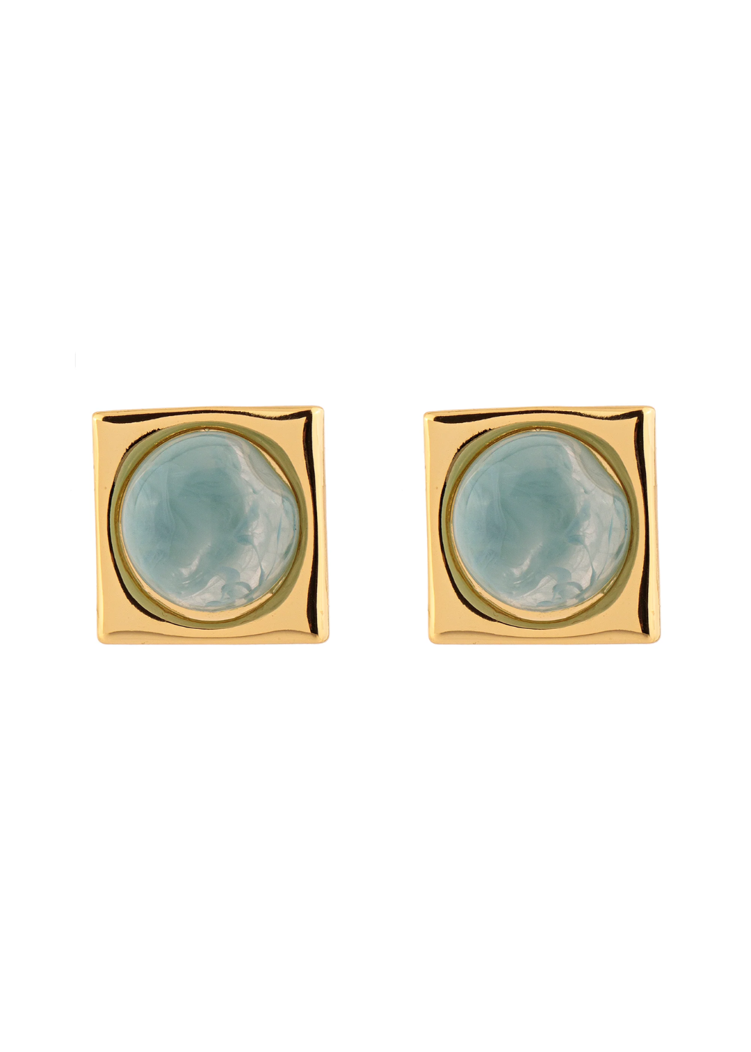 Brinco Entorno Quadrado com Pedra Azul/Verde Dourado