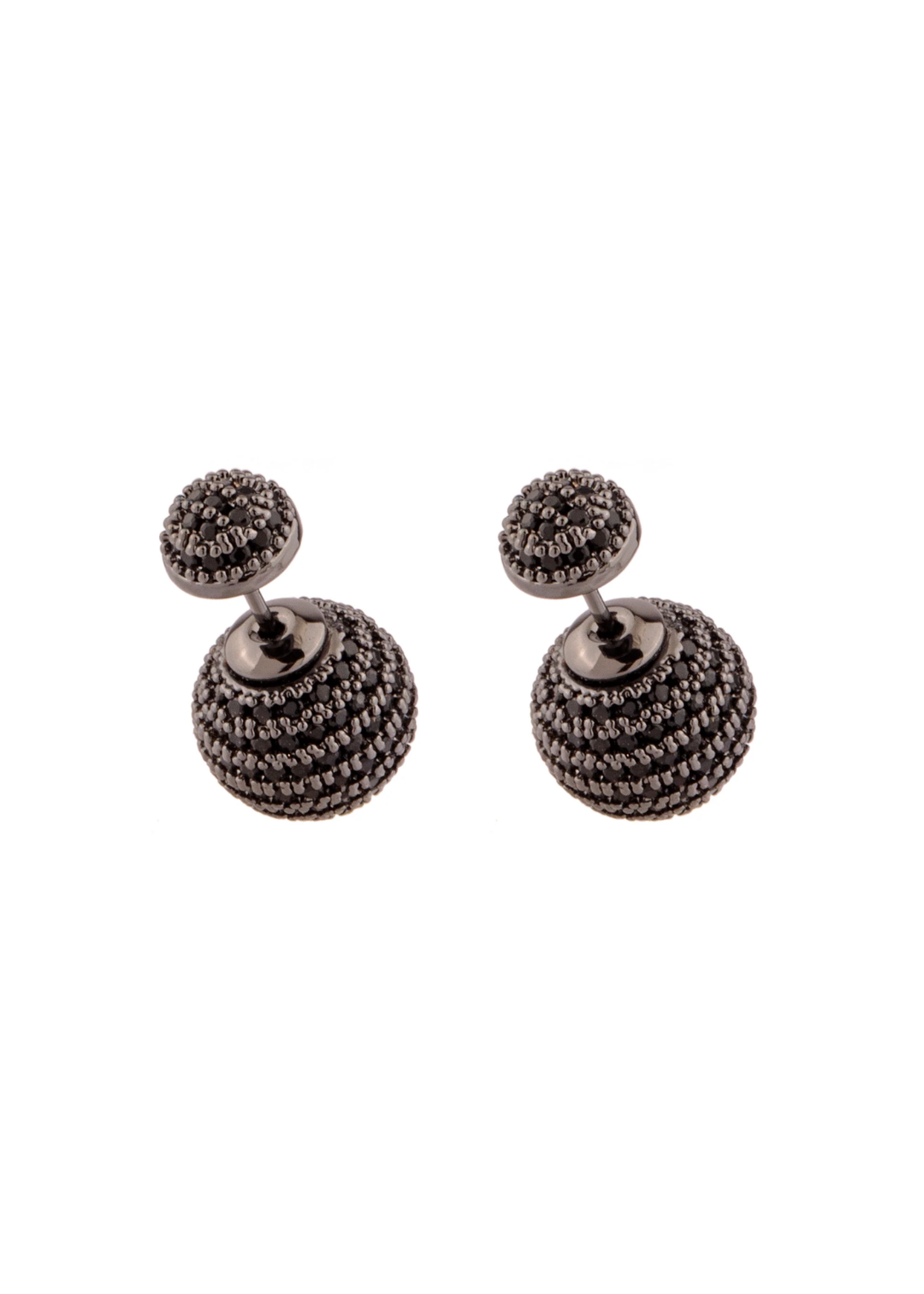 Descrição: Brinco meia esfera cravejada, com tarraxa esfera maior cravejada