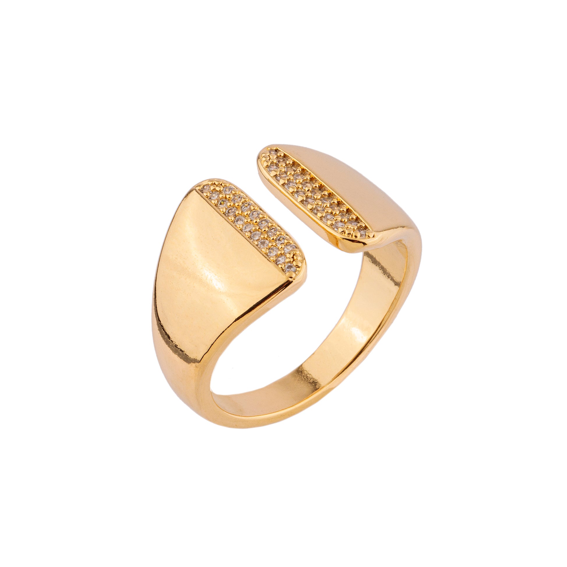 Anel Regulável Liso com Linhas Cravejadas Dourado