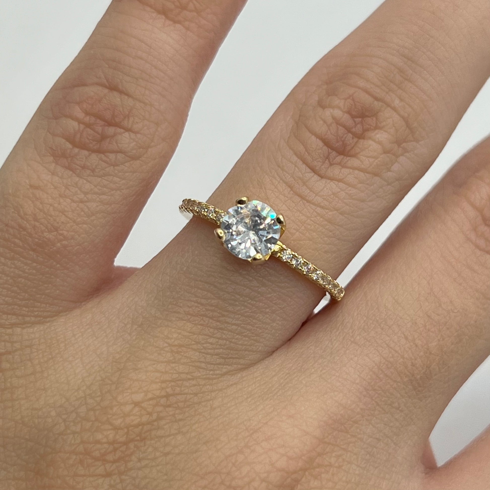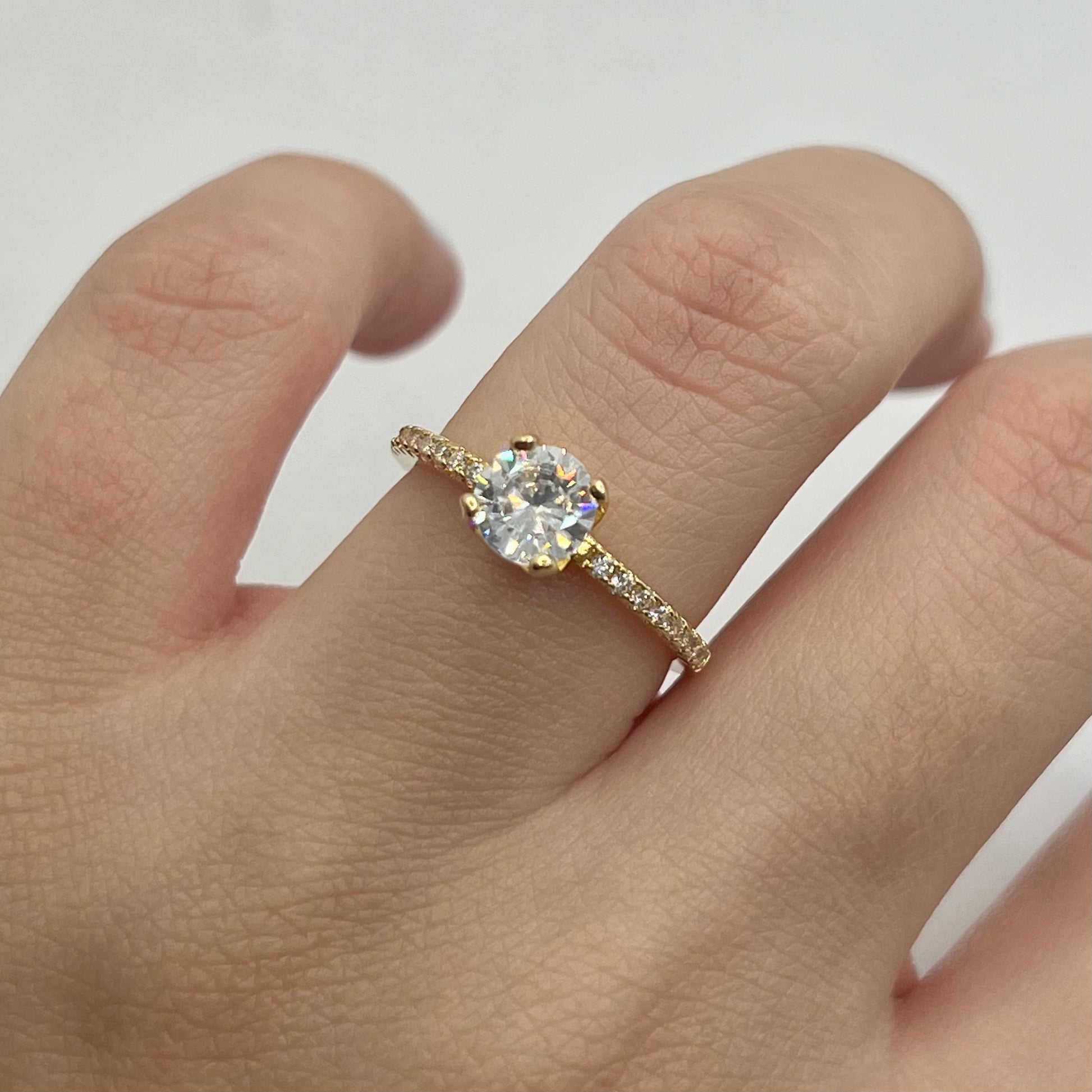 Descrição: Anel estilo solitário cravejado em zircônia cristal