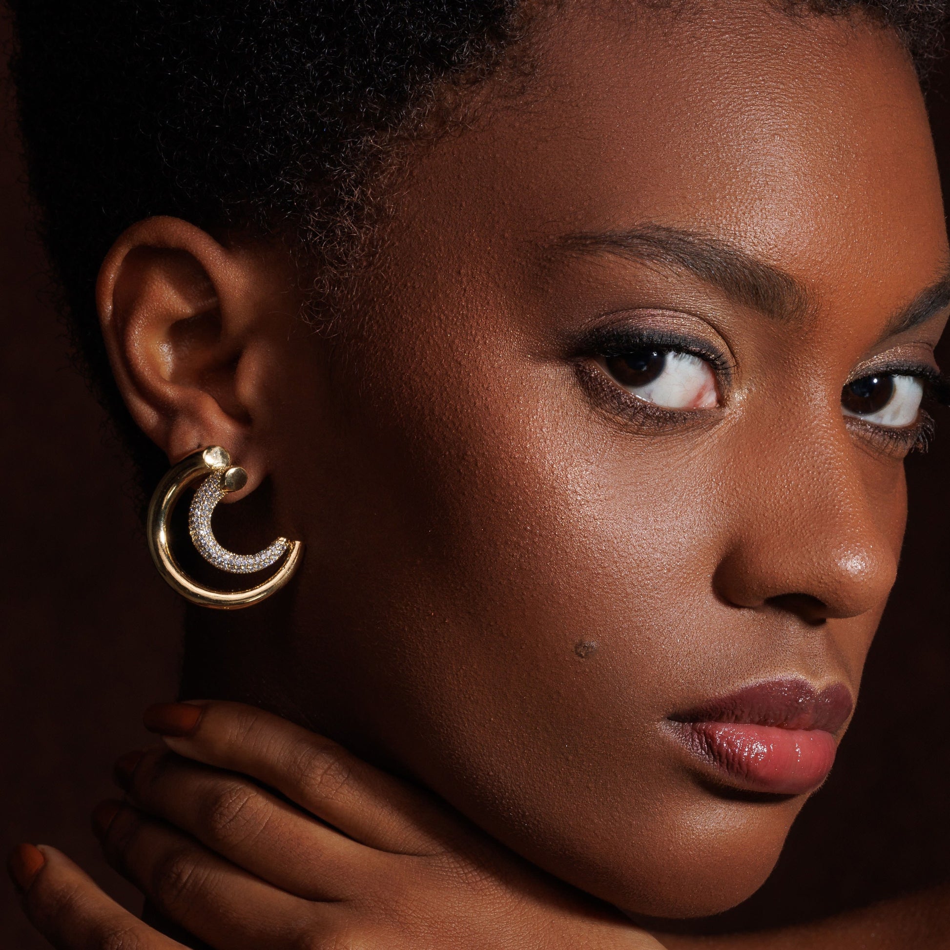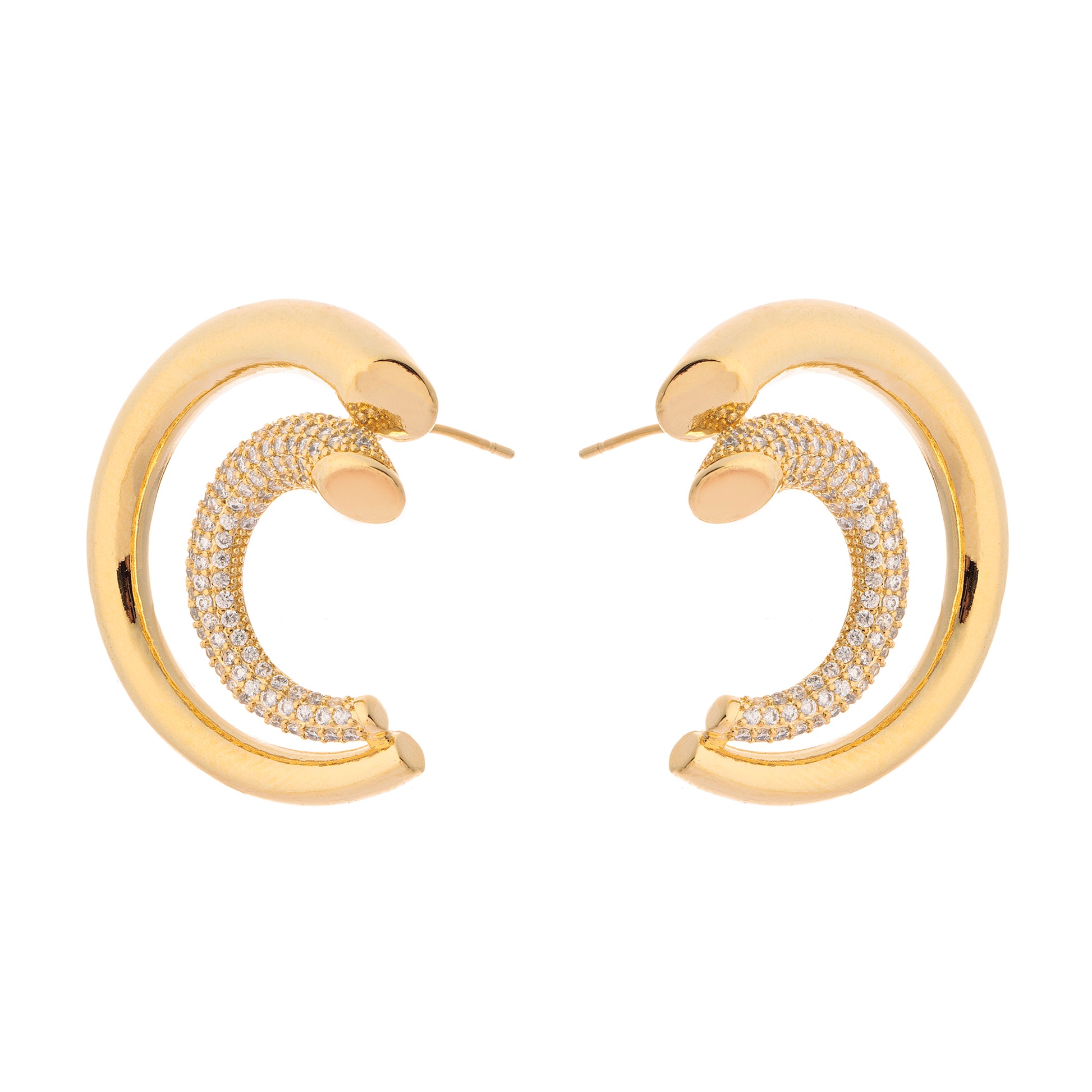 Descrição: Brinco frontal liso e cravejado em zircônia cristal