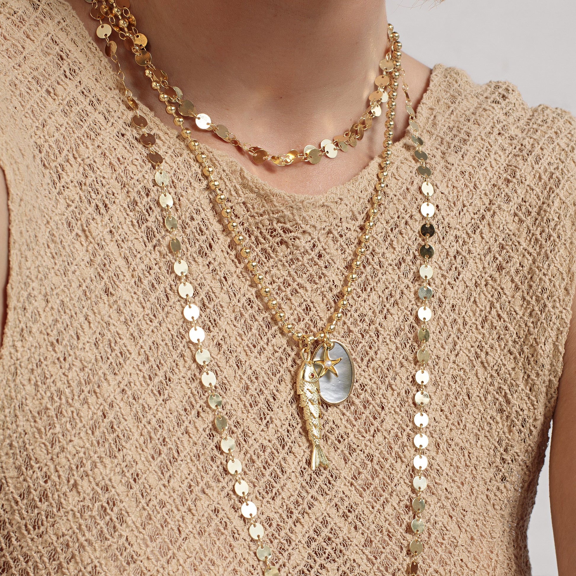 Colar Esferas com Pingente Peixe e Madrepérola Dourado Nat Mosca