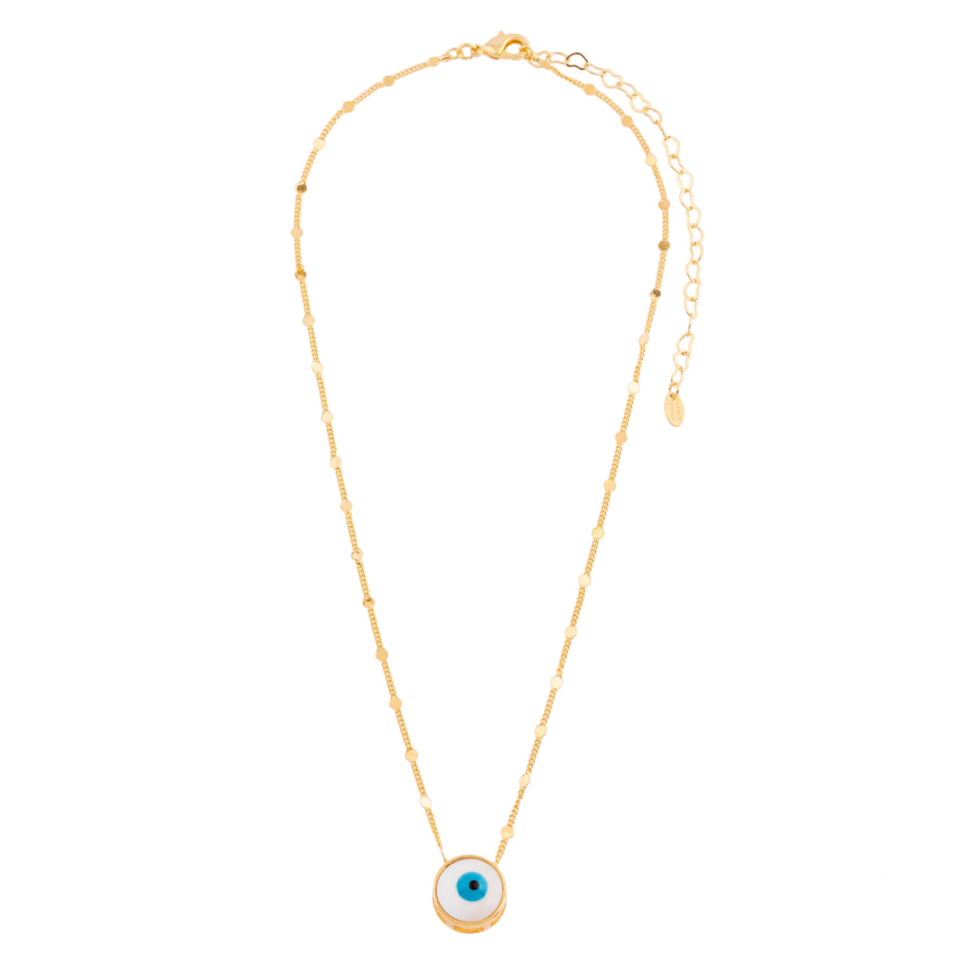Descrição: Colar corrente trabalhada delicada com pingente de olho grego