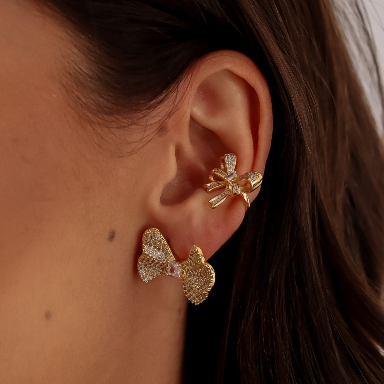Descrição: Piercing em formato de laço cravejado em zircônia cristal