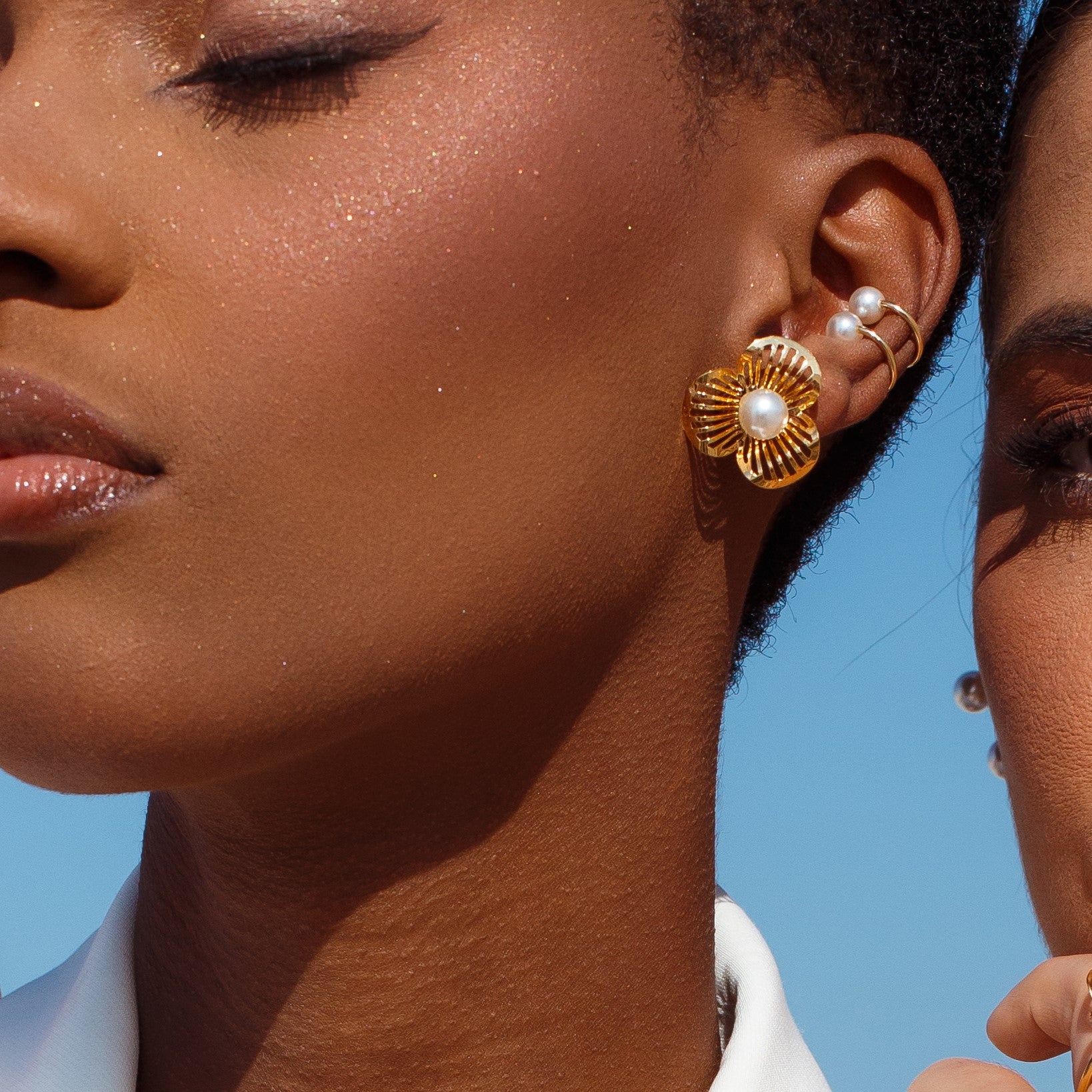 Descrição: Piercing delicado duplo, com aplicação de pérolas sintéticas. Fácil regulagem para colocar e retirar da orelha.