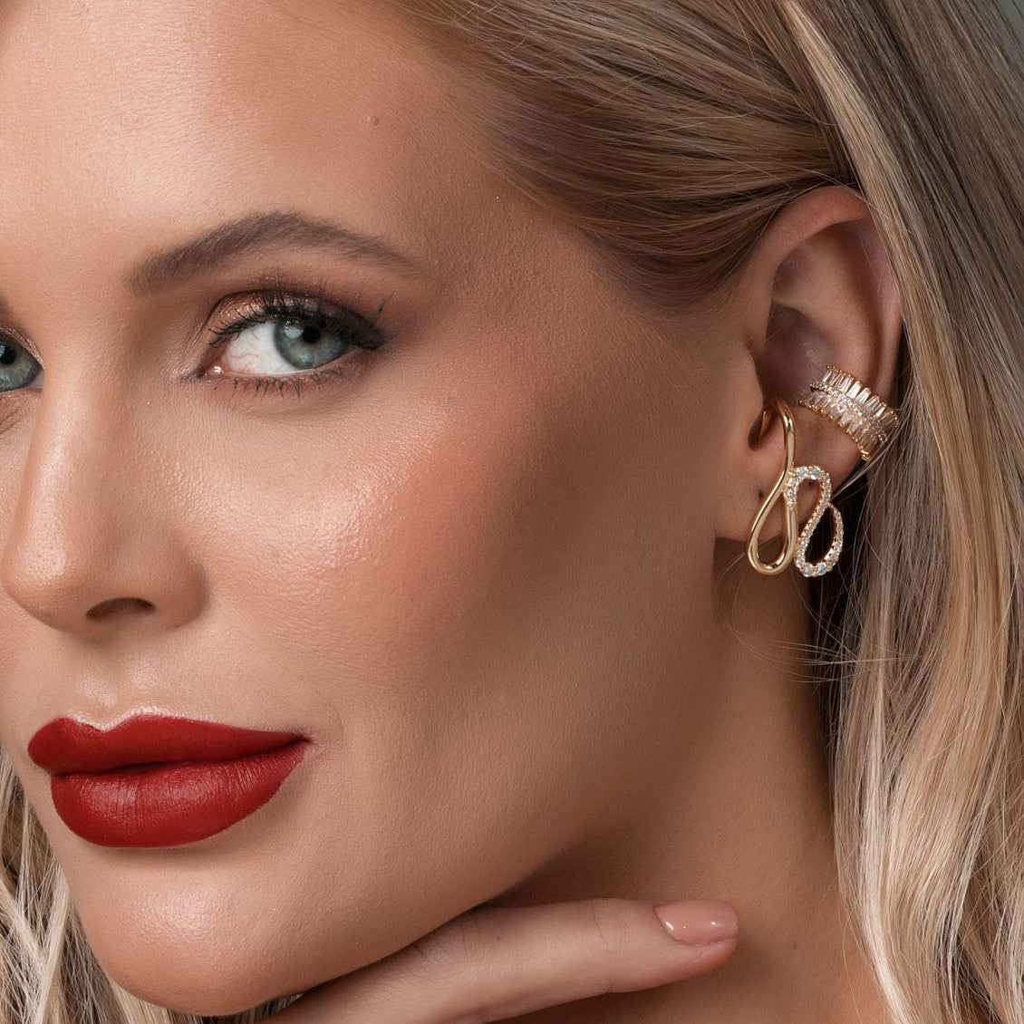 Descrição: Brinco frontal ear hook cravejado em zircônia cristal