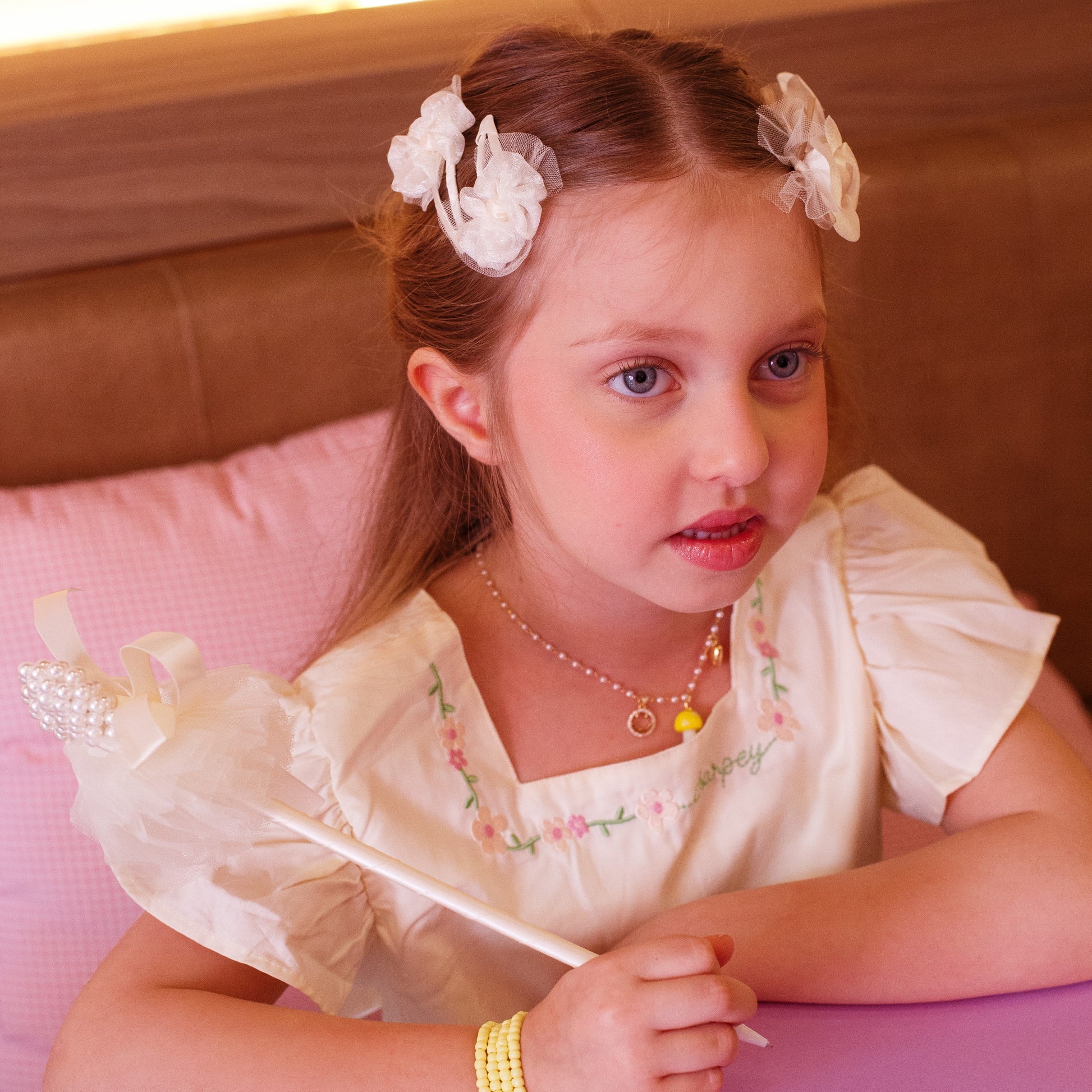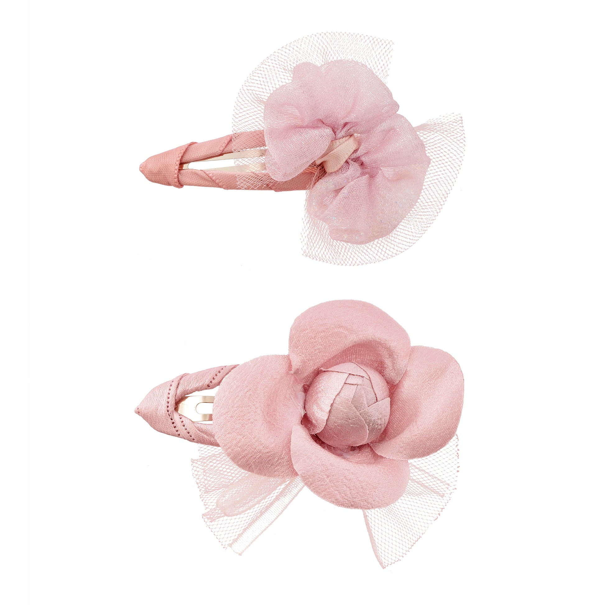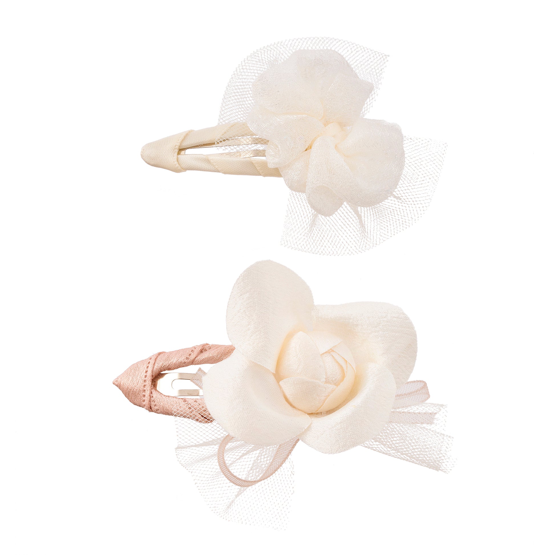 Descrição: Dupla de cabelo grampo tic tac com flor em tecido e laço em organza.