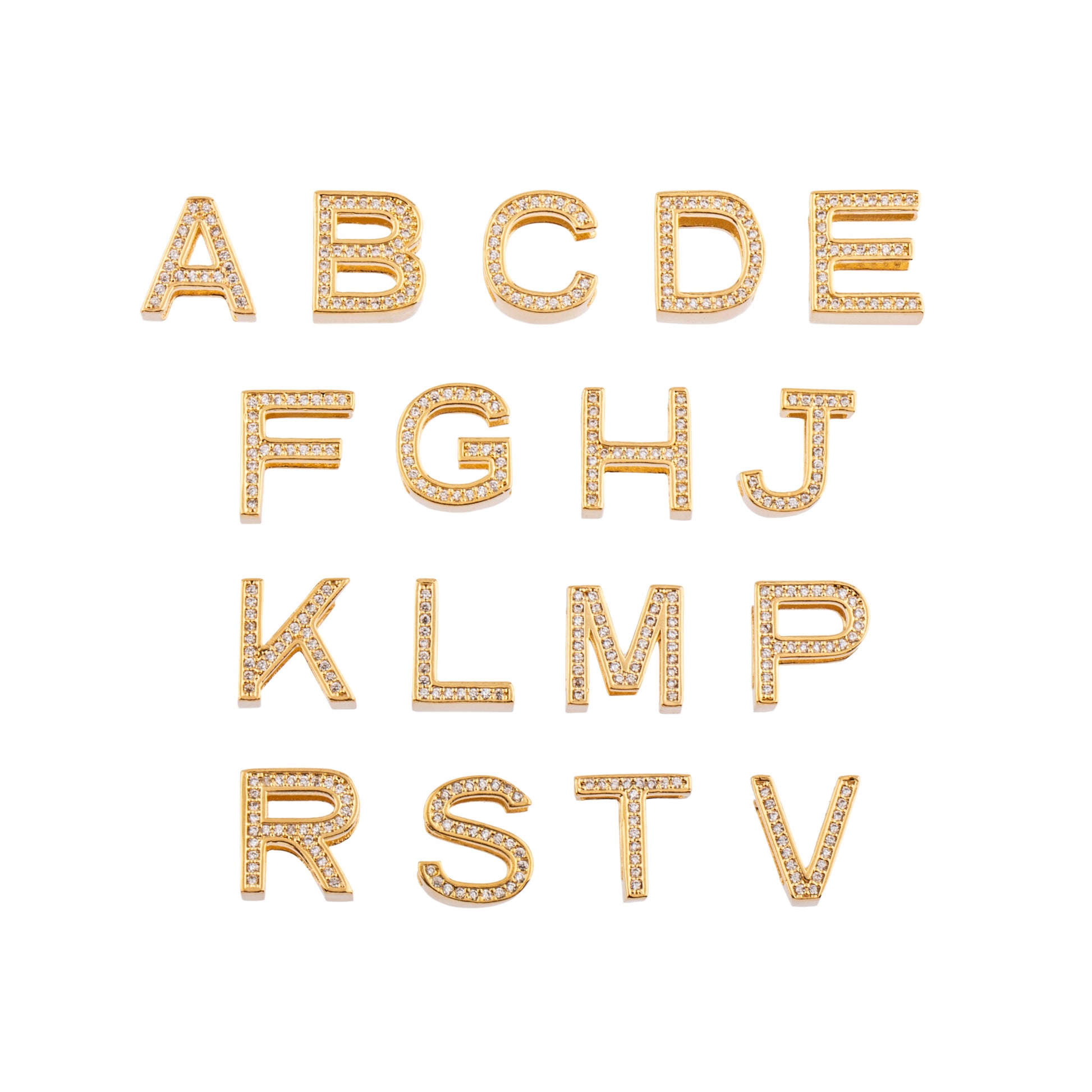 Descrição: Pingente de letra com furo passante, cravejado em zircônia cristal;