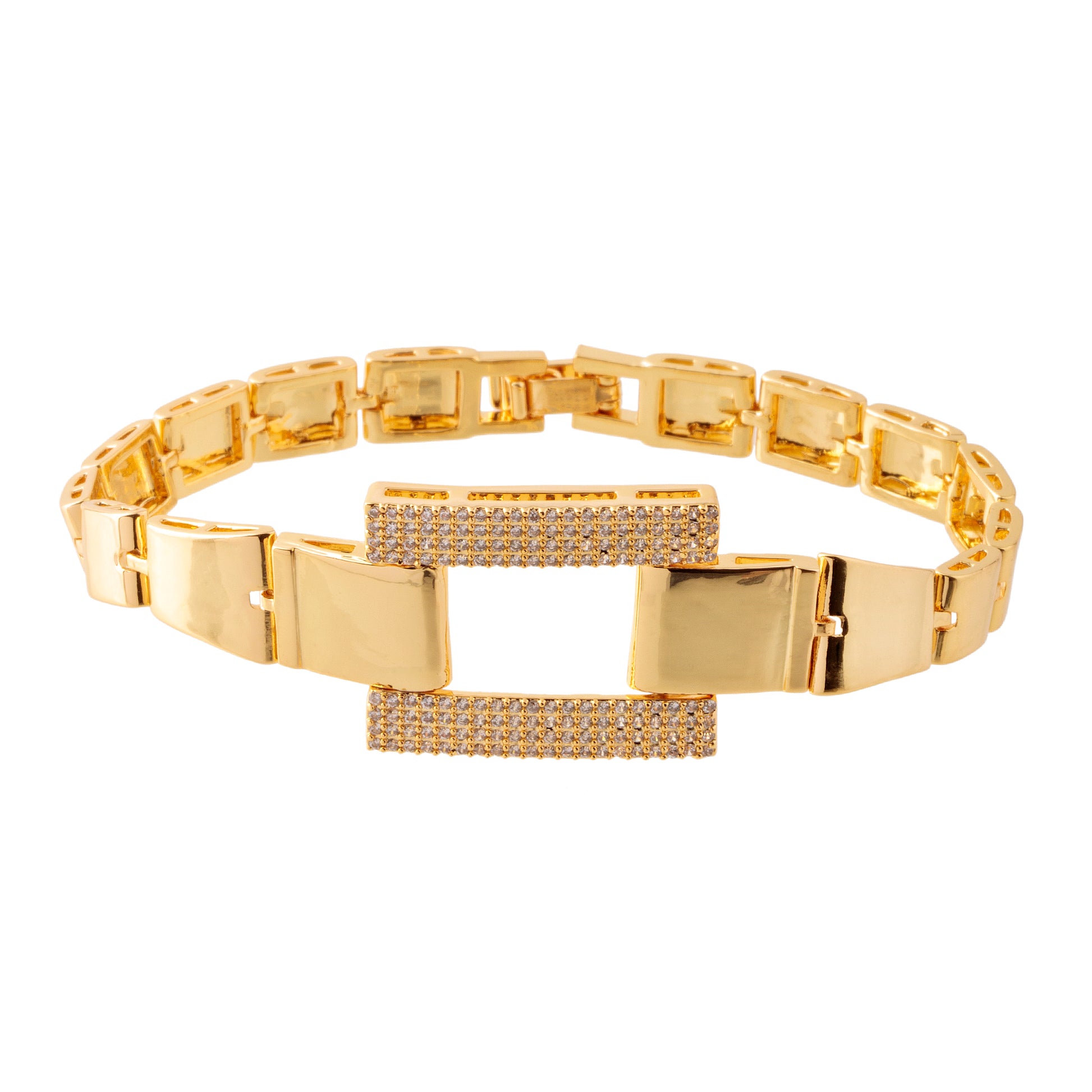 Descrição: Pulseira com fecho de click, articulada com detalhe cravejado em zircônia cristal