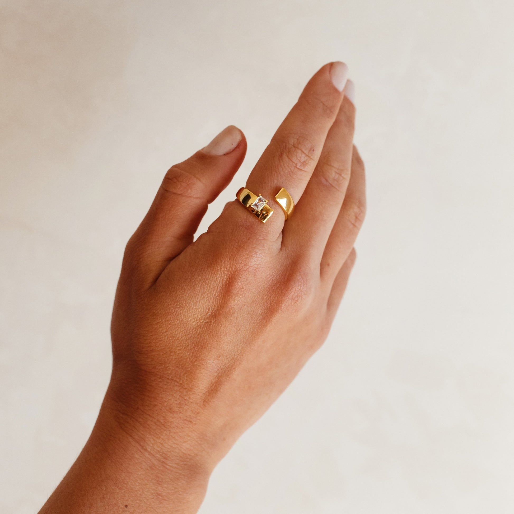 Anel Com Abertura Liso Dourado Pedra Cristal