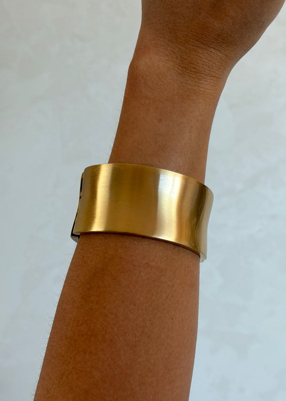 Com linhas limpas e presença marcante, o Bracelete Largo Metal Escovado aposta no minimalismo com impacto visual. A superfície acetinada cria um efeito sofisticado e contemporâneo, enquanto o formato amplo valoriza o pulso e transforma a peça em protagonista da composição.