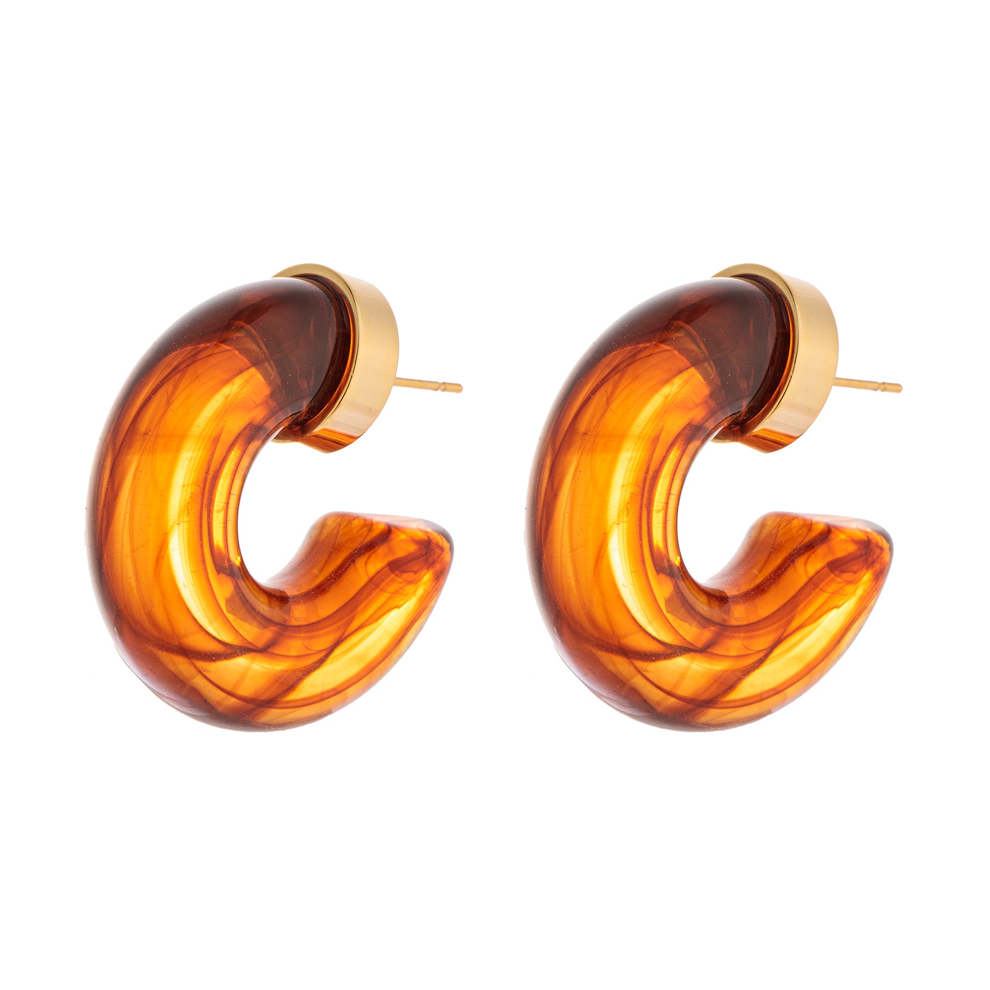 Descrição: Argola de tarraxa, em resina tom marrom e acabamento em dourado