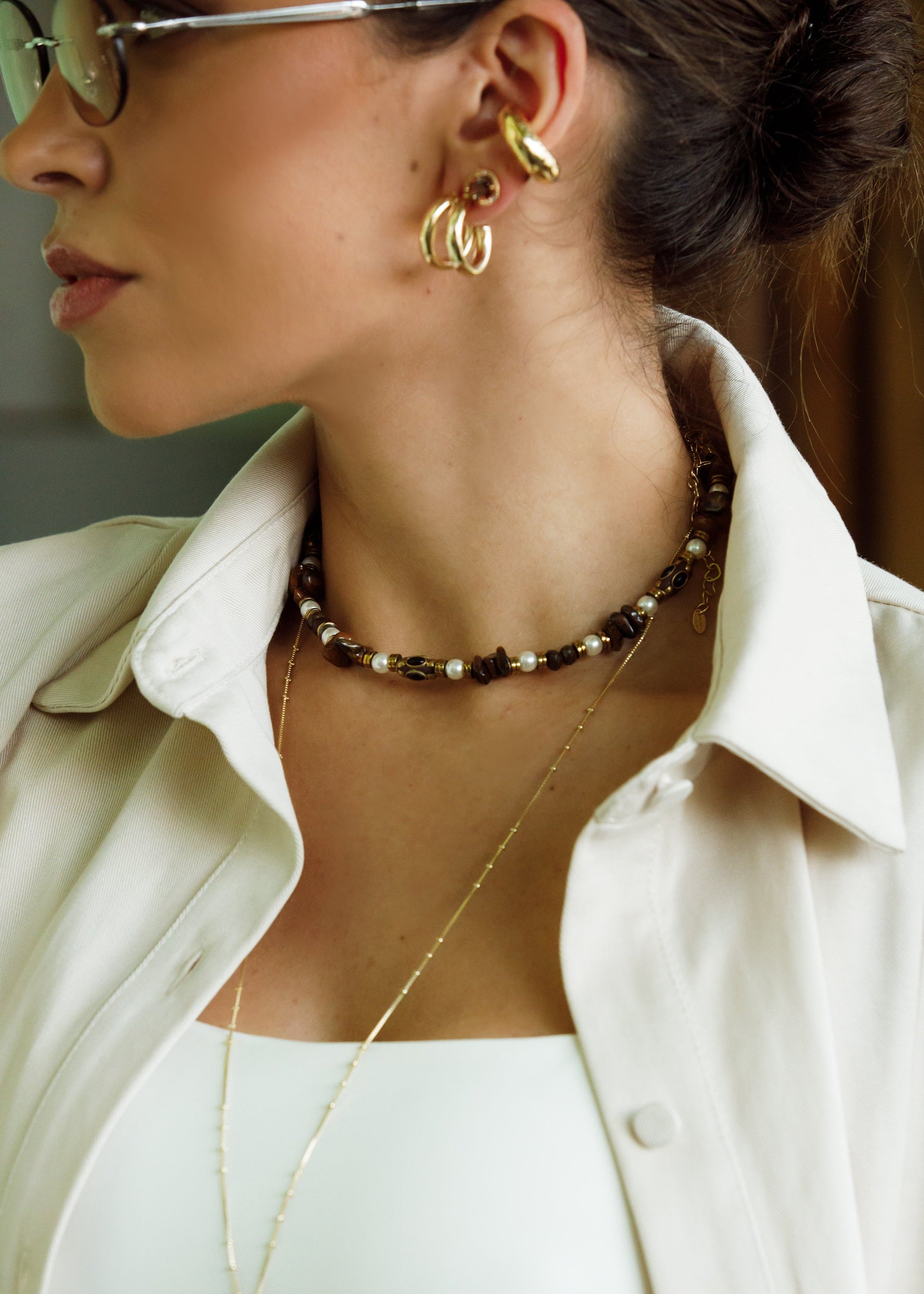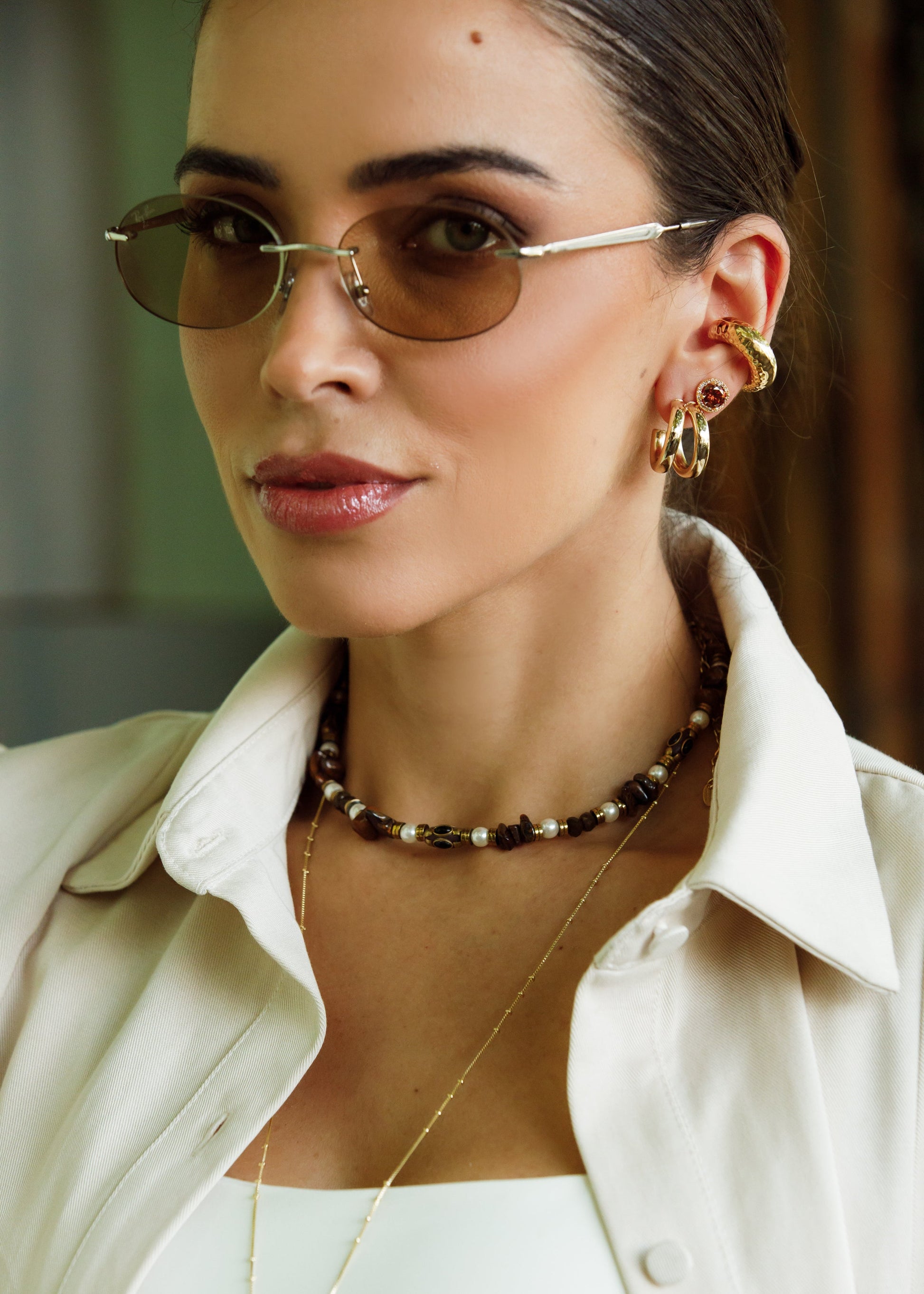 Brinco em metal com design de argolas sobrepostas, criando efeito de múltiplos aros em uma única peça. O formato estruturado traz volume na medida certa, com acabamento polido que valoriza o brilho do dourado.