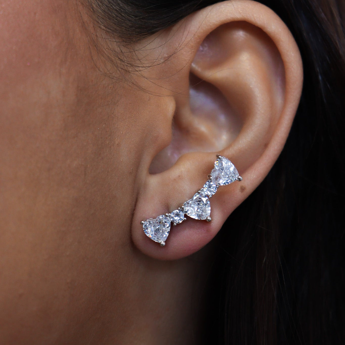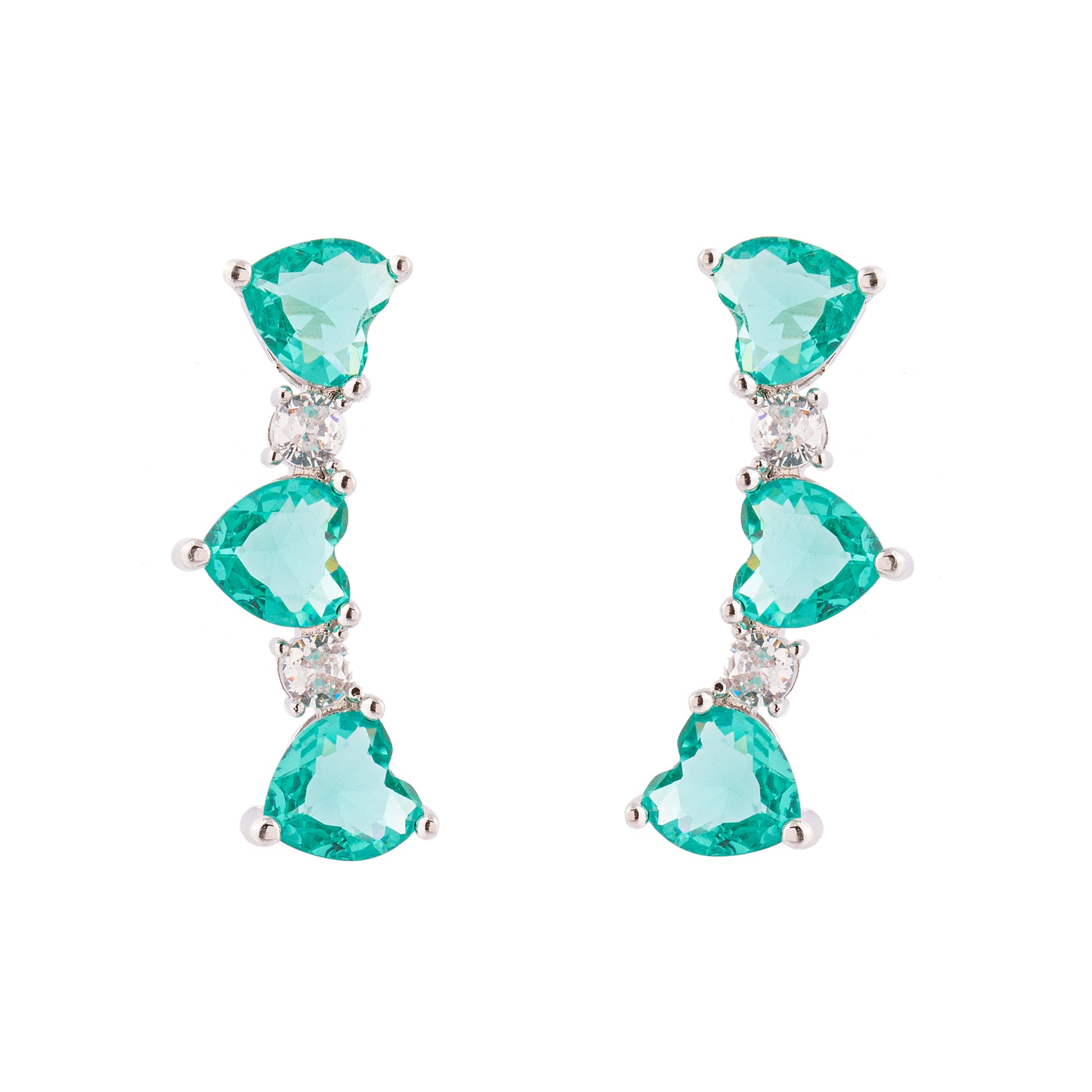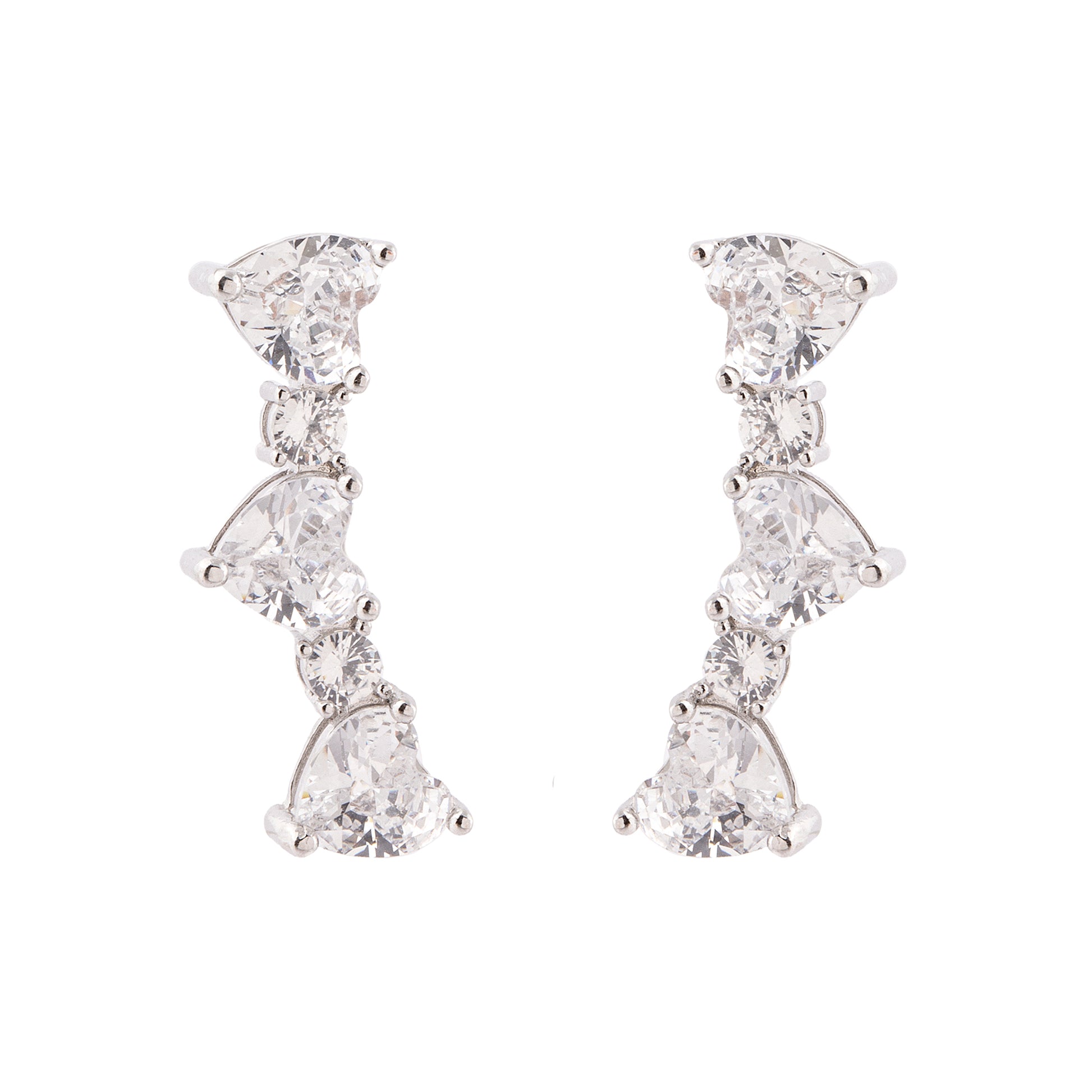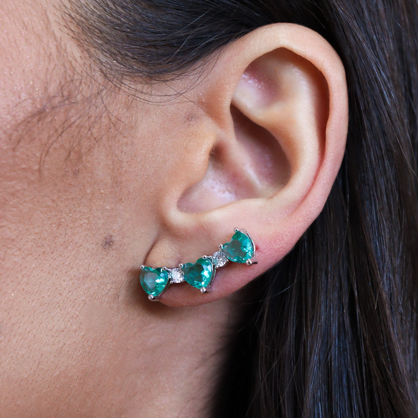 Descrição: Brinco ear cuff, formato de coração em zircônia colorida/cristal e ovais cristais