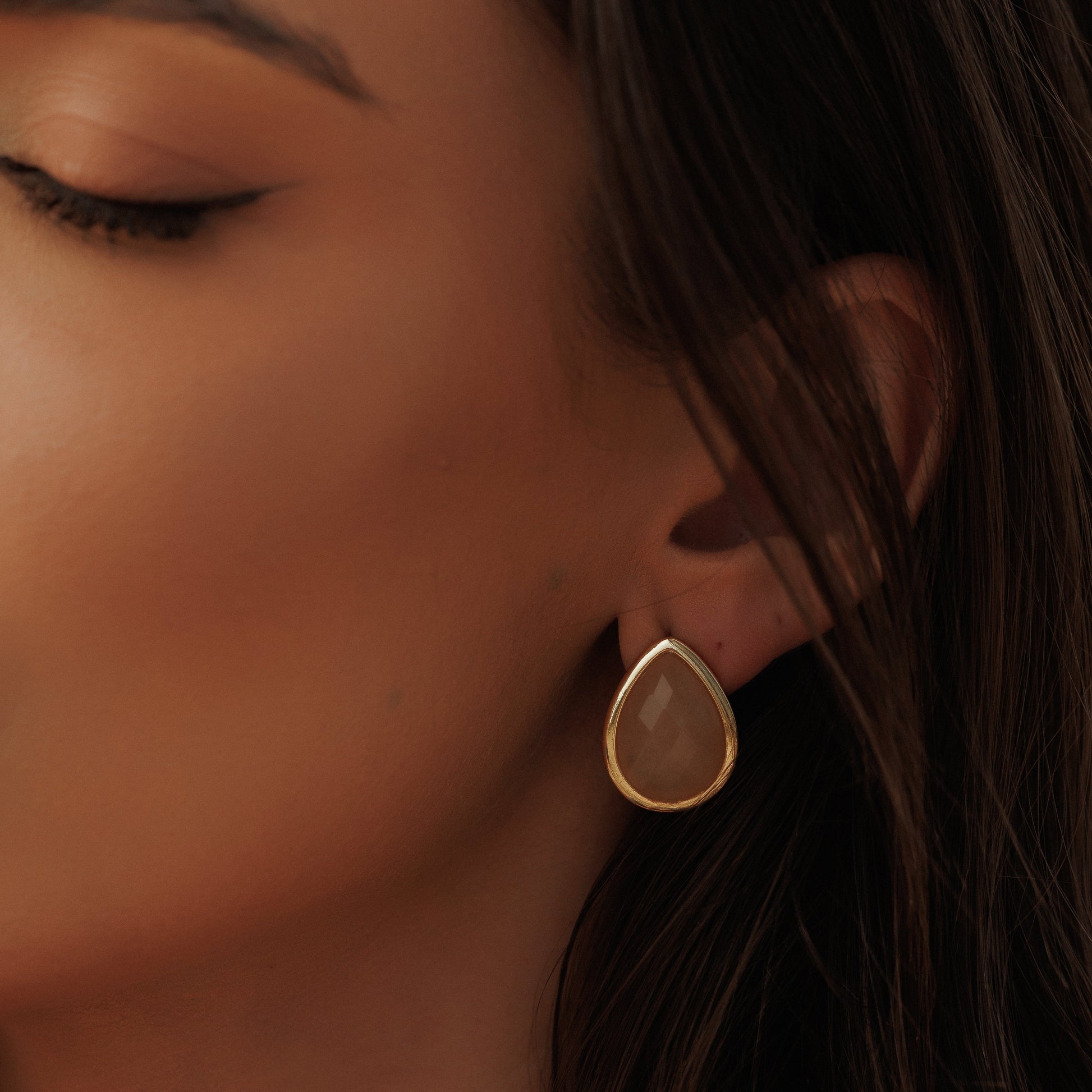 Descrição: Brinco em formato de gota com pedra nude no centro