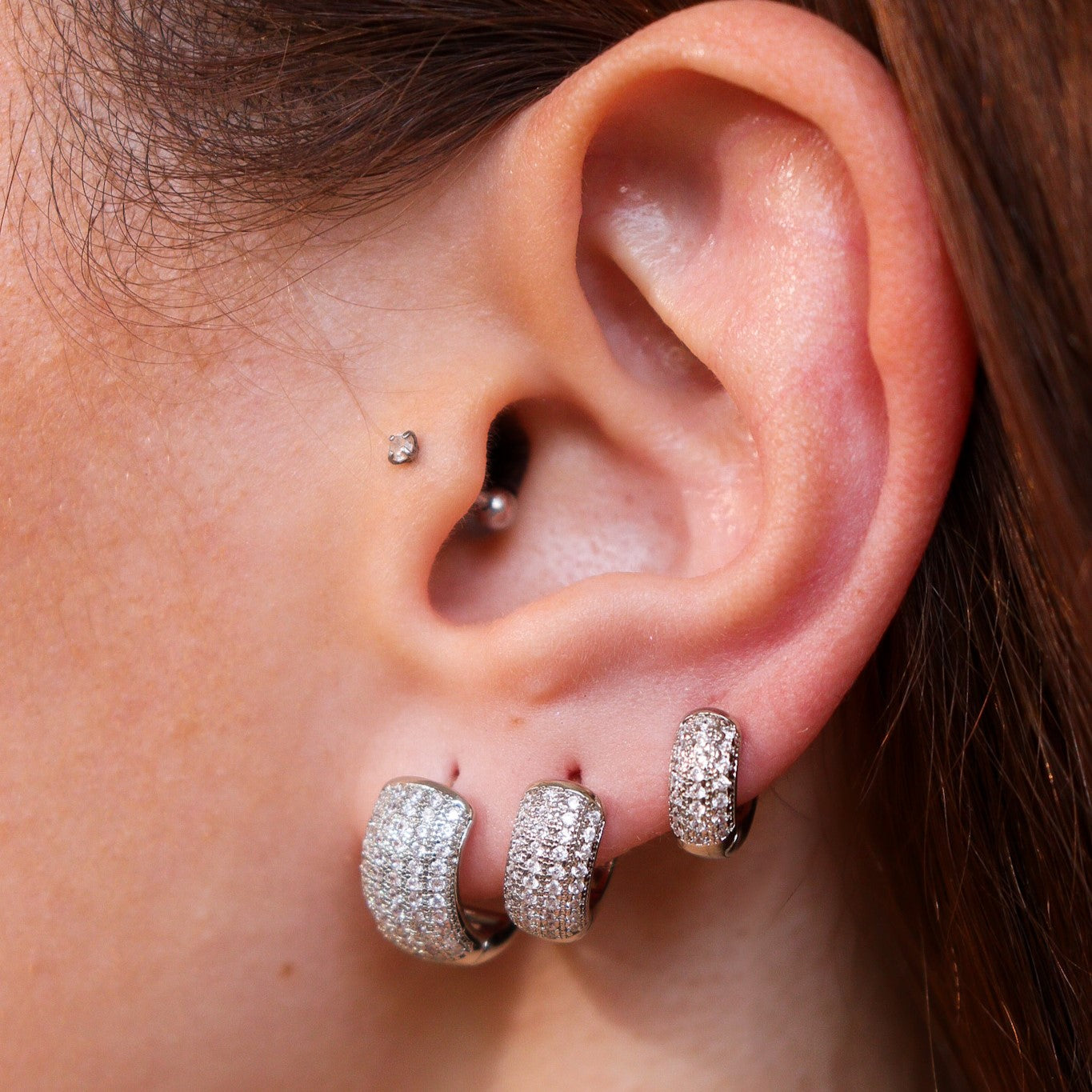 Descrição: Argolas com fecho click, cravejadas em zircônia cristal