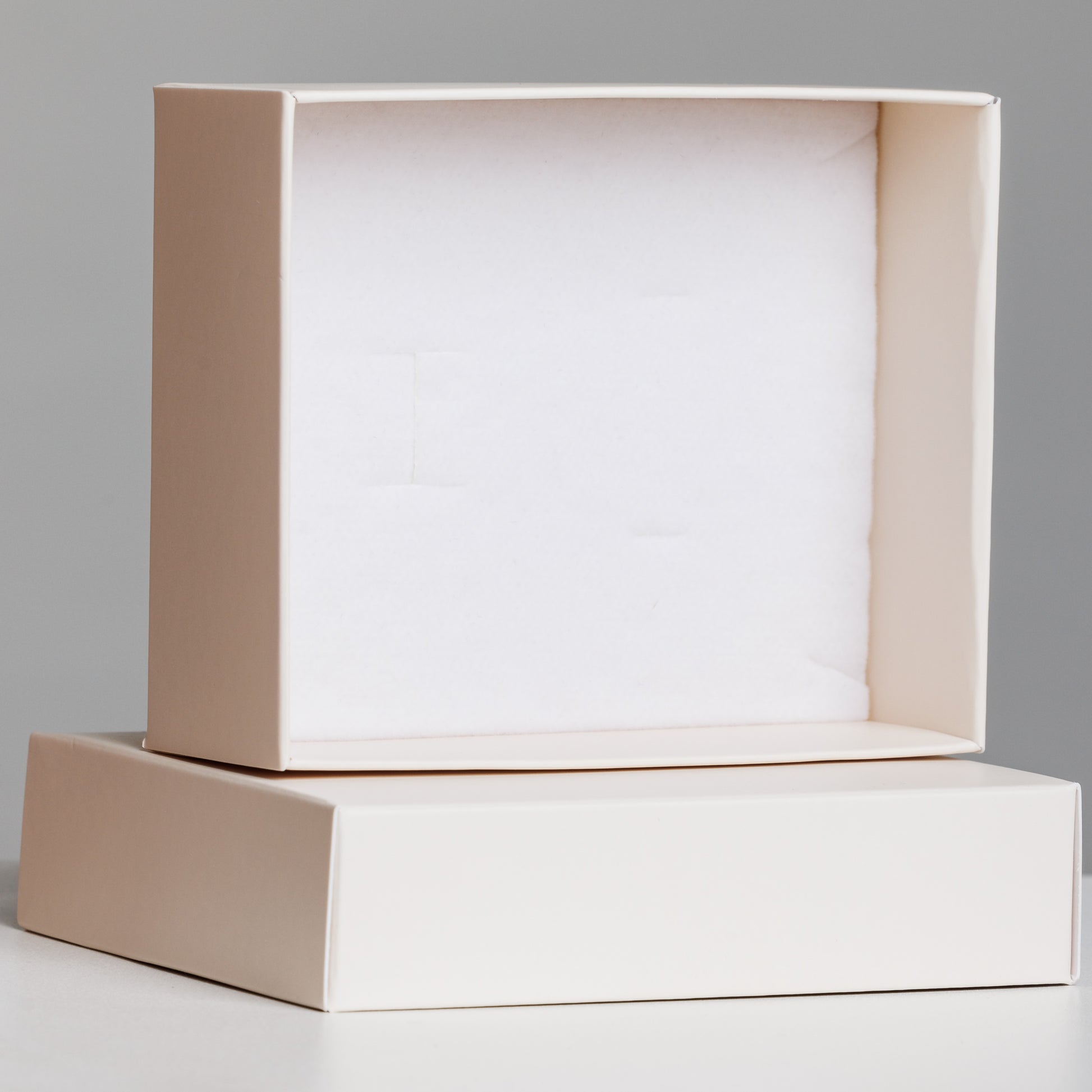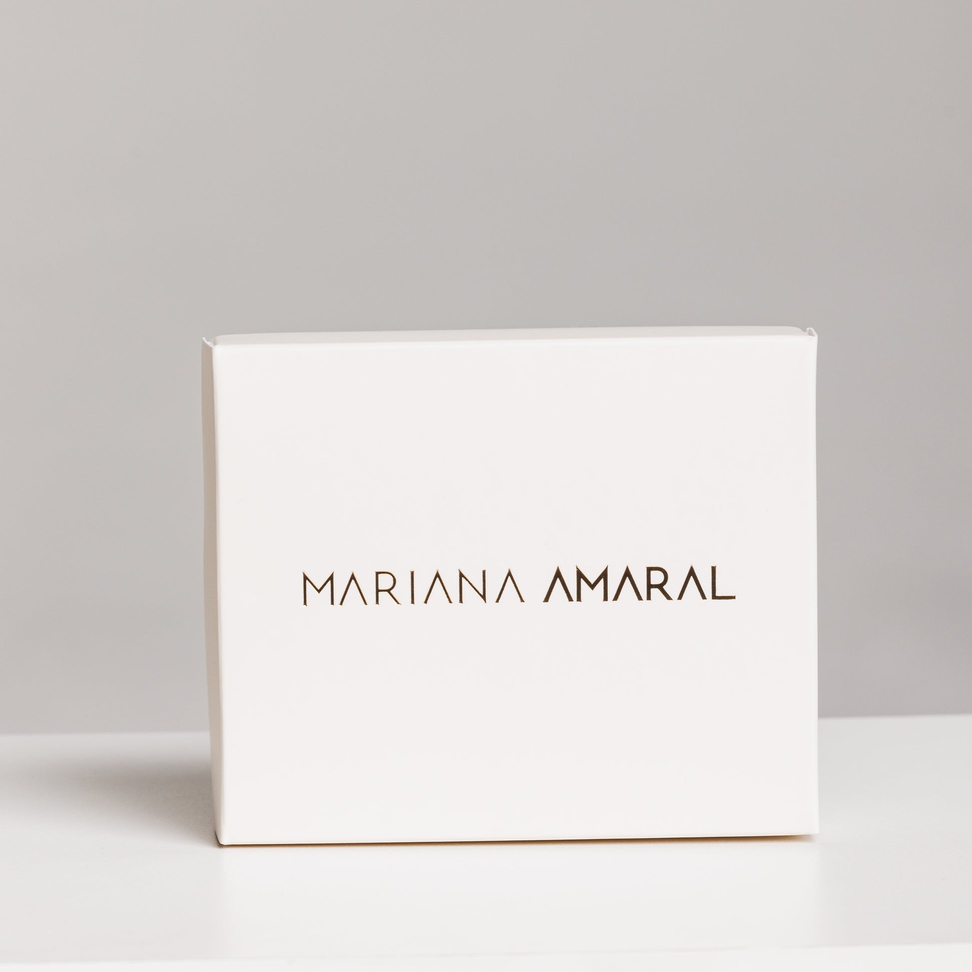 Caixa para presente com logo e almofada para suporte da peça - Possuí cor creme com logo dourada