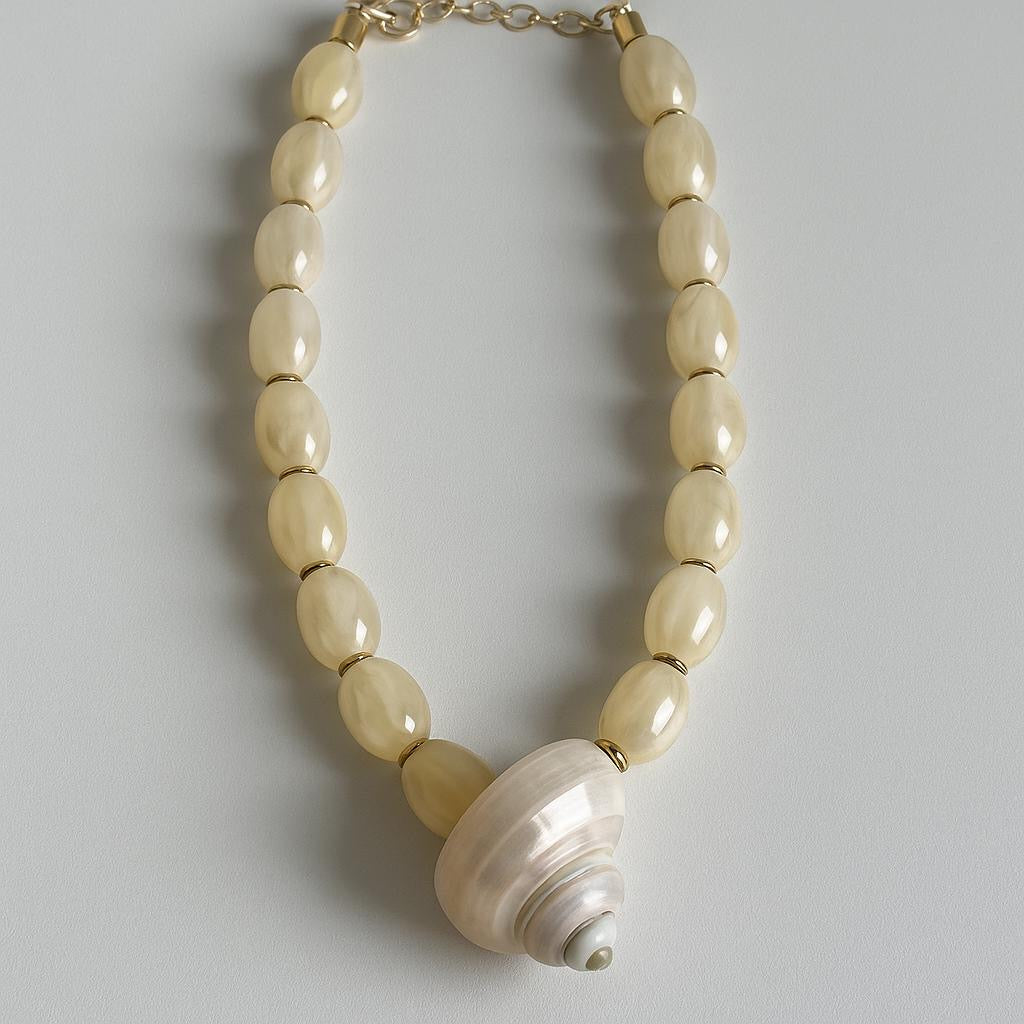 Colar com Pedras Naturais e Pingente de Concha Aspiral