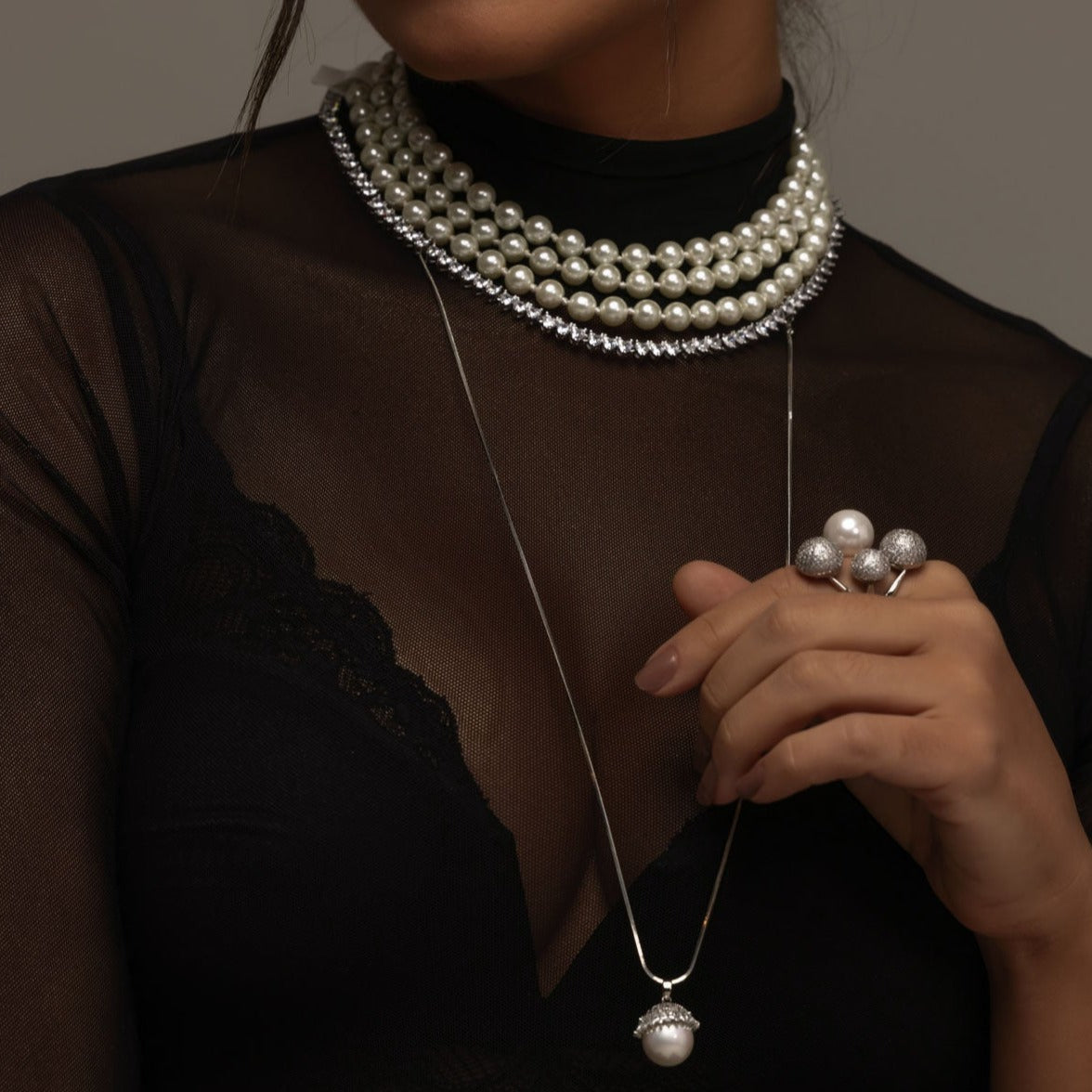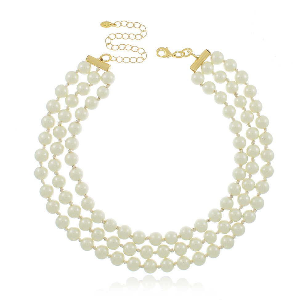Descrição: Colar triplo de pérolas sintéticas com acabamentos em dourado.