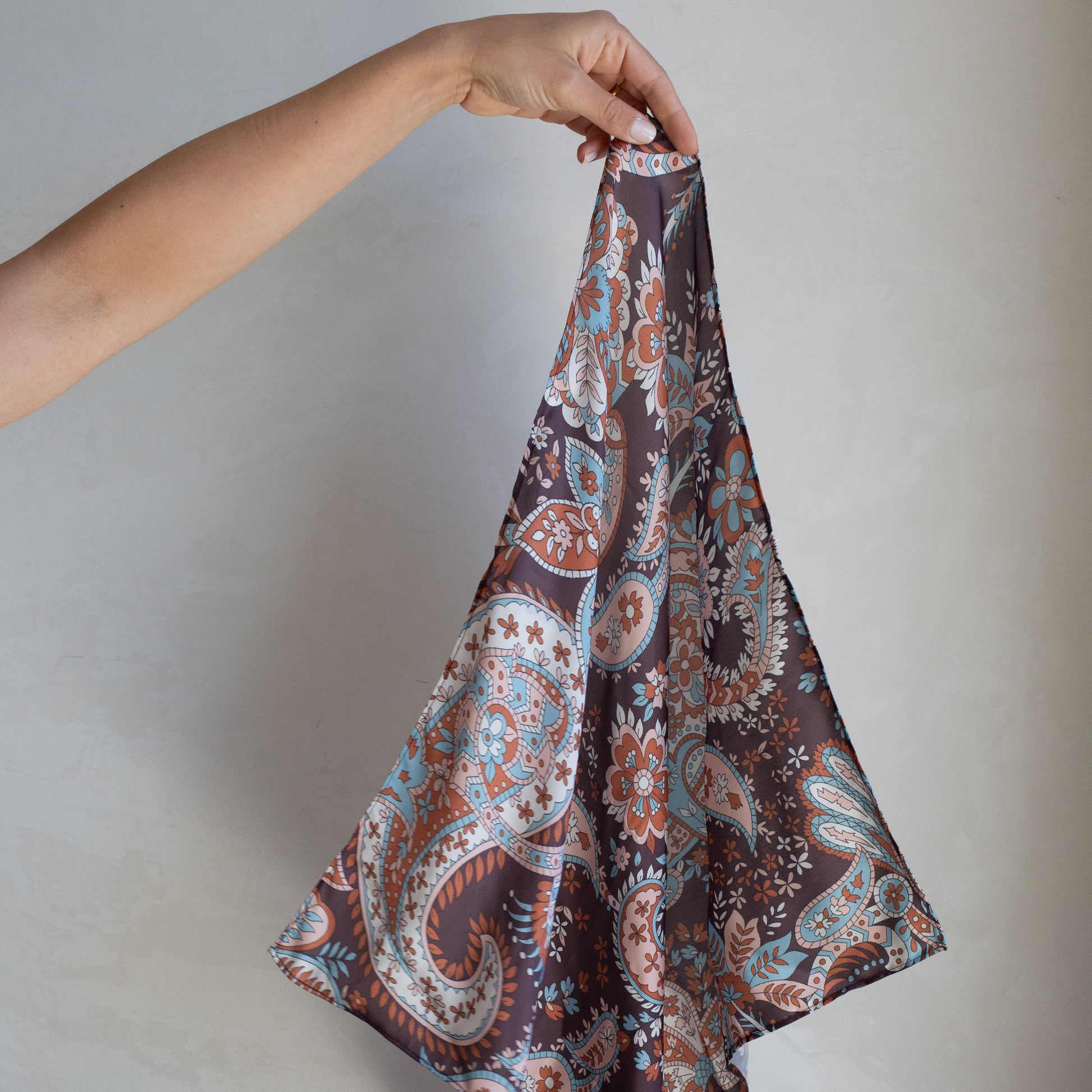 Cuidados: Para manter sua beleza por muito mais tempo, recomenda-se lavar o lenço à mão com sabão neutro e água fria, sem o uso de alvejantes ou produtos abrasivos. O ideal é não torcer, apenas retirar o excesso de água delicadamente, deixando secar à sombra em superfície plana. Caso seja necessário passar, utilize temperatura baixa e, de preferência, um pano de proteção entre o ferro e o tecido.