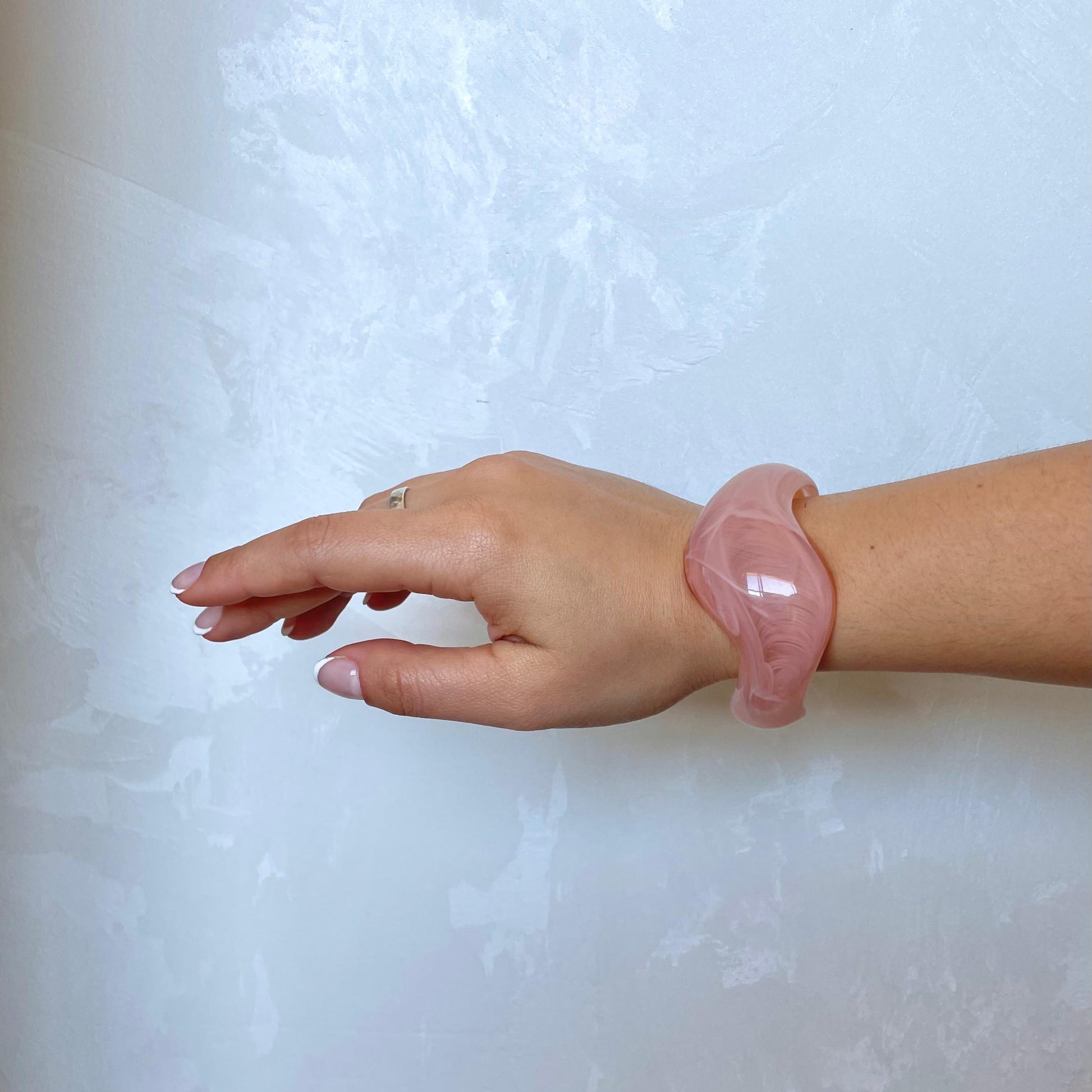 Descrição: Bracelete em resina na cor rosa
